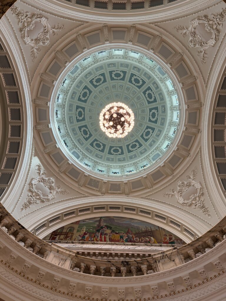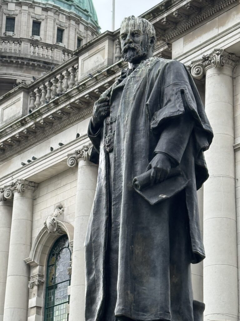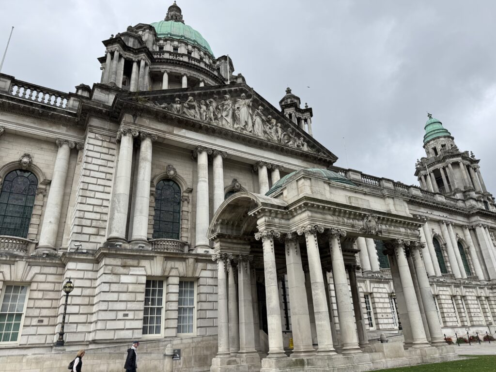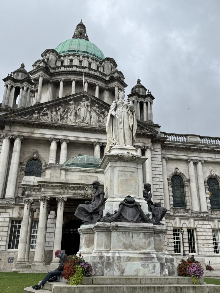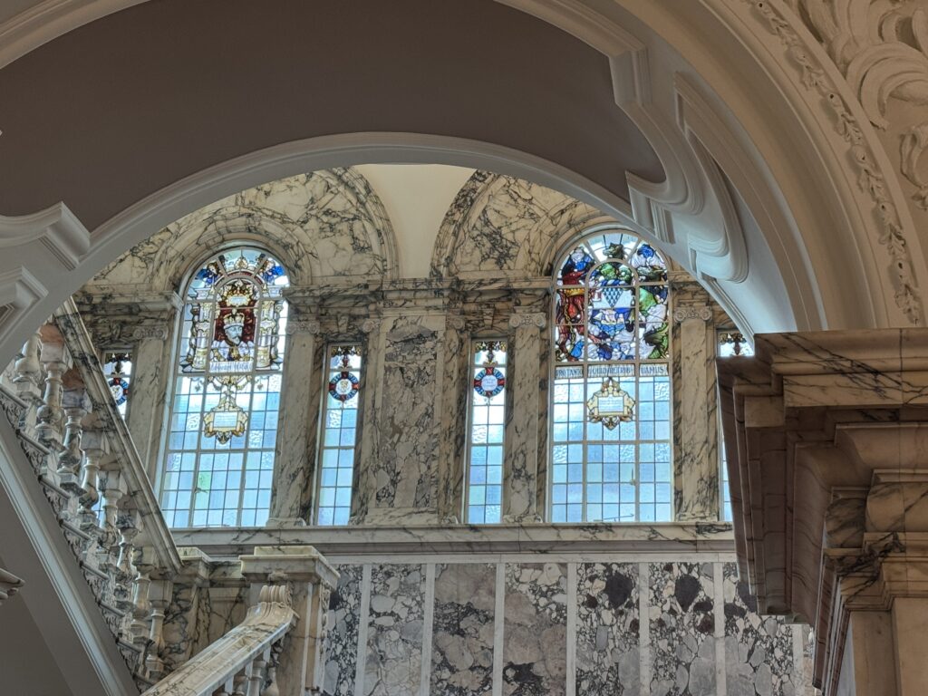 Our first stop was Belfast City Hall. I had read online that you should not miss the chance to go inside, and that turned out to be very true. It was a beautiful building on the inside. I only got pictures of a couple of the stained glass windows, but if I showed you everything we saw, there would be no reason for you to visit (not really true) and this would turn into a book instead of a blog!