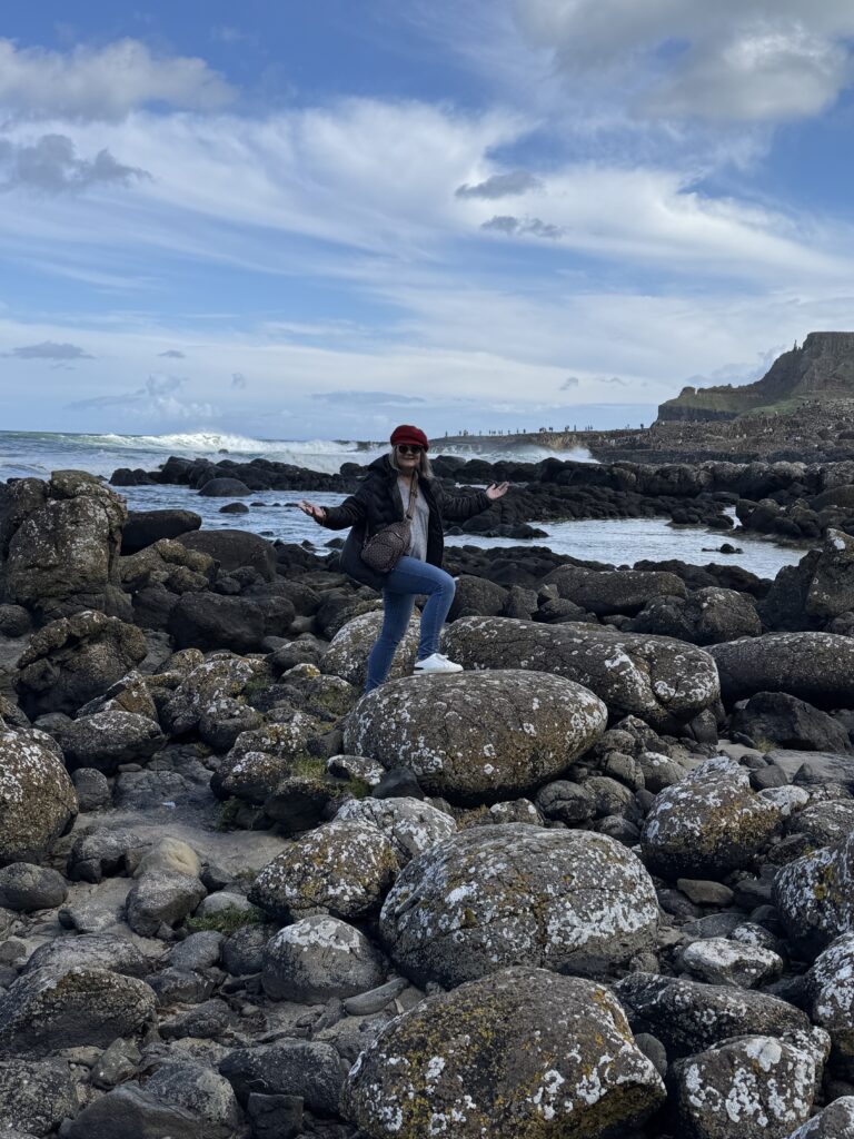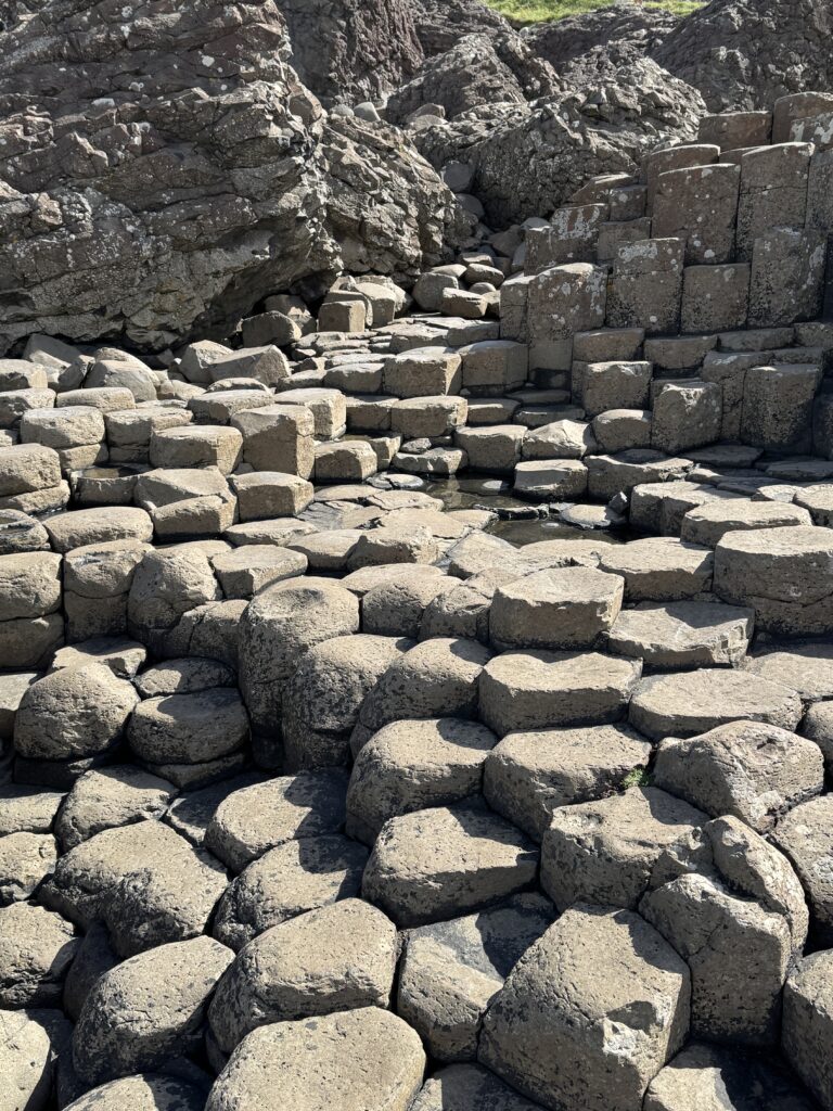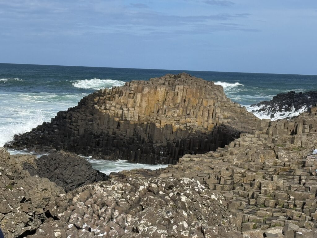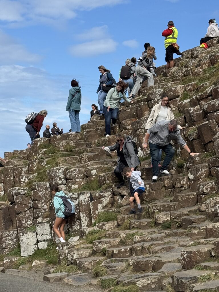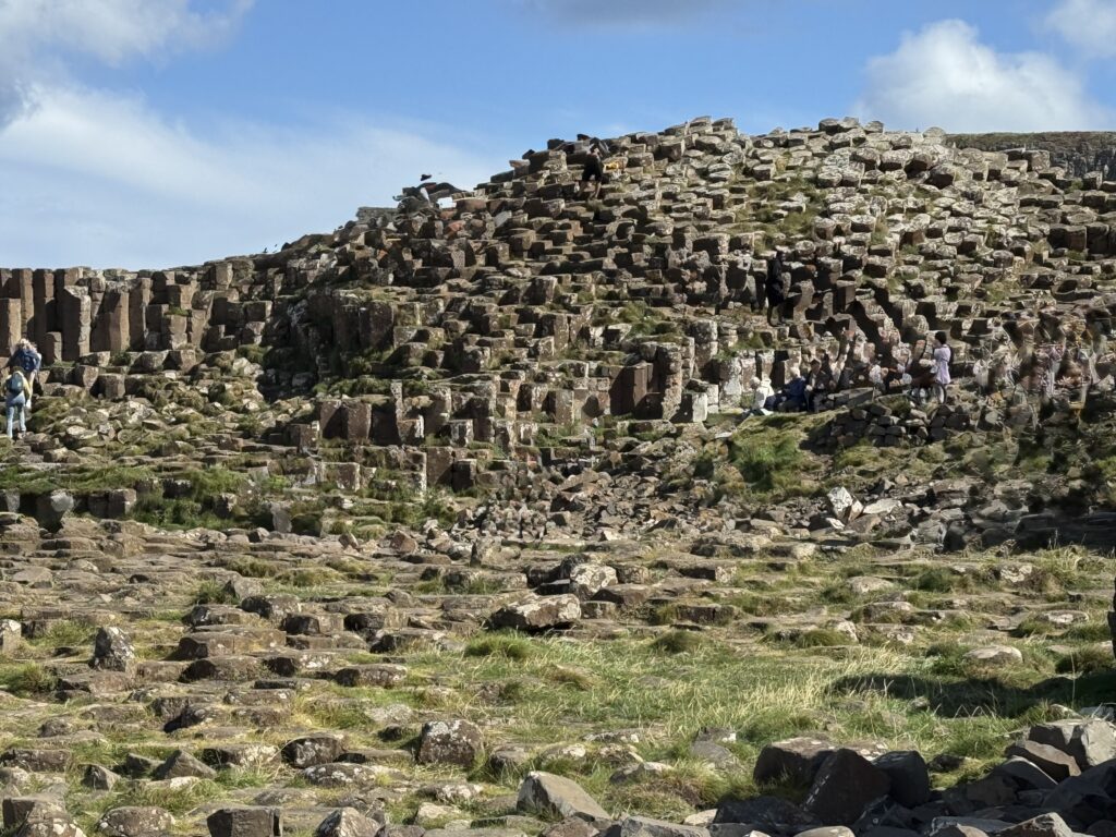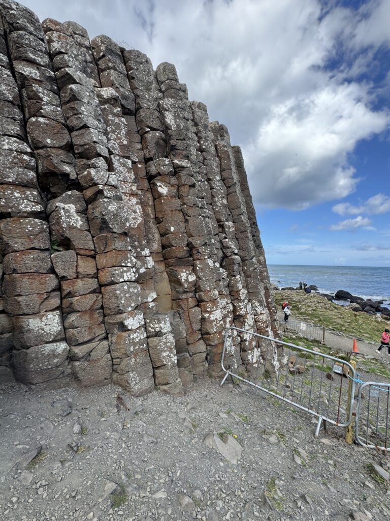 Quick photo stop at Dunluce Castle and we were on our way to Giants Causeway. I didn’t really know anything about Giants Causeway before researching this trip, but Diana wanted to go, otherwise I might have missed something really incredible. The rocks and rock columns are all natural phenomena but look manmade. Our bus driver told us there was a bus that could take us down to the rocks and return us for 1£ each way. He said it was pretty steep coming back, so we thought we would see once we got there if we needed the bus or not. What Lindsay forgot to tell us was that it was one and a half miles to get from the visitor center where he dropped us off to the rocks. Needless to say, we road the bus back.