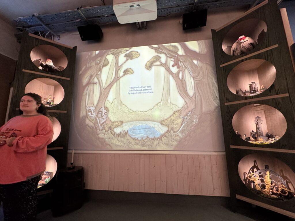 After we had been revived with a bit of food and drink, we decided to find the National Leprechaun Museum. There isn’t much to see here, but there is lots to hear and to learn. It is a “museum” dedicated to preserving the art of oral storytelling. We met our guide Katie who led us from room to room regaling us with myths and legends about Irish faeries, leprechauns, and selkies.