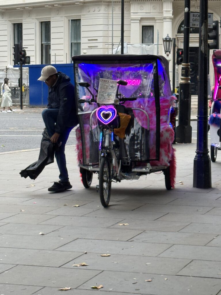 We said goodbye to the Scarlet Lady this morning. While waiting for our bus to London, we stopped and had a pot of tea and scones to get out of the rain. After about two and a half hours, we made it to the Victoria Coach Station in London. Our hotel was only a quarter mile away so we hoofed it with our luggage to the hotel. Sad note: Diana’s luggage is now on its last legs. On the way to the bus station, it broke a wheel and when the bus driver was loading it onto the bus, the zipper broke, spilling her clothes out onto the pavement. Fortunately she was able to get the zipper closed again and we made it without any further incident to our hotel. However, we did find a luggage strap while we were out and about in London to patch it up long enough to get her home.