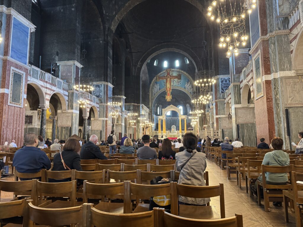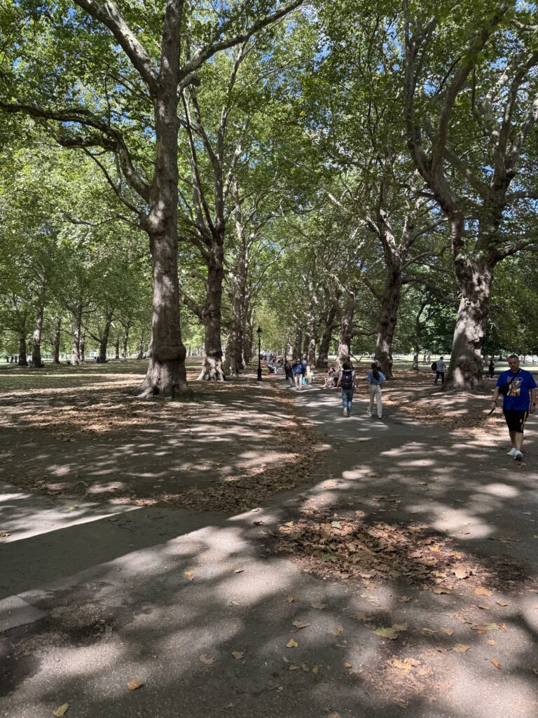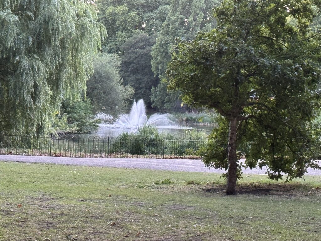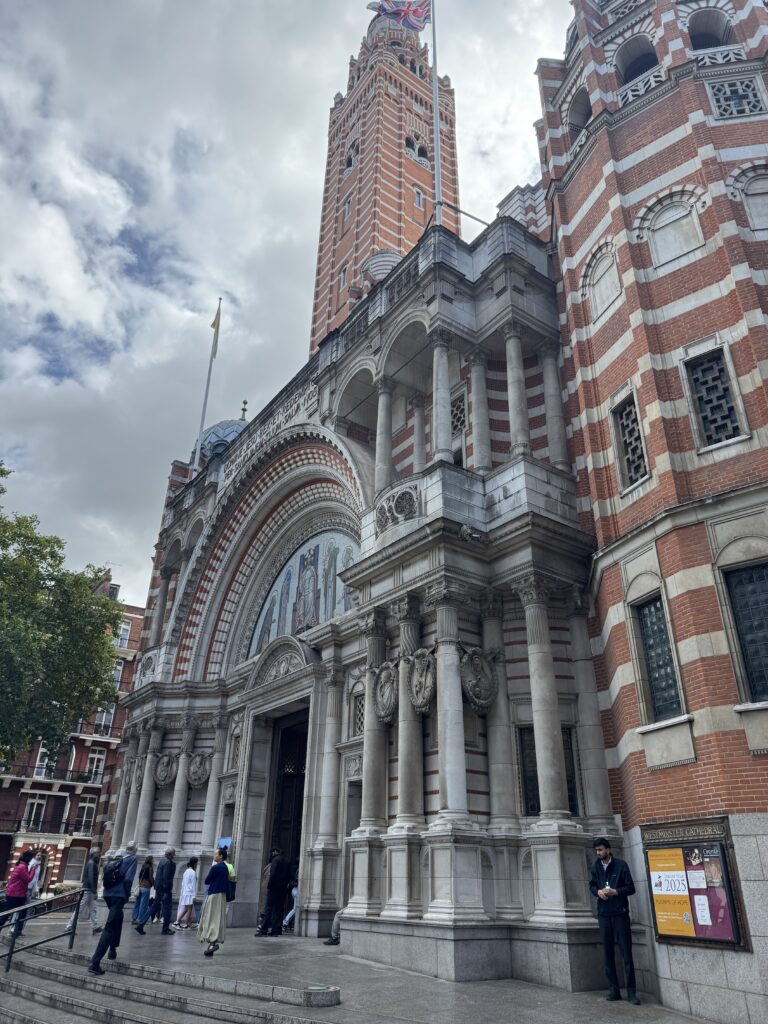 Since we were so close, and it was Sunday, we decided to take in the Solemn Mass at Westminster Cathedral. A gorgeous church and a good message from the priest on humility. After mass we strolled by the palace again. Charles was still out so we continued on through St. James’ Park. It was a beautiful day and many people were enjoying the amazing weather. We made a small detour to see the Diana Fountain, as it just seemed appropriate given my companion’s name.