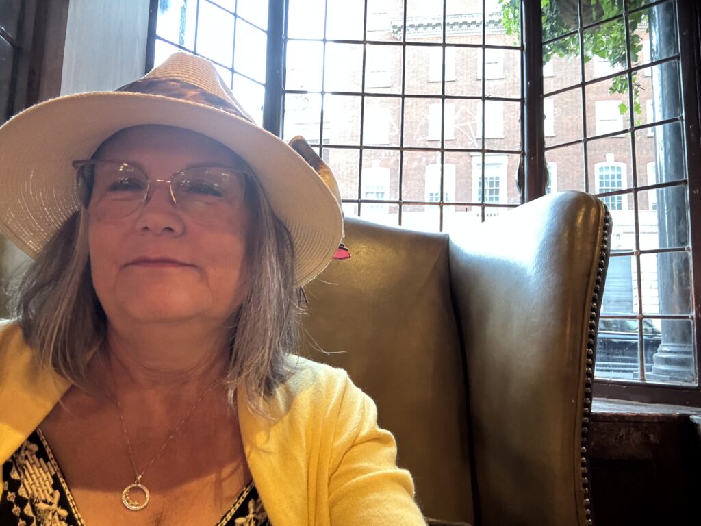 Diana’s flight arrived, we hugged it out, of course, and texted our driver to let them know we were ready to be picked up. The company told me that there was a problem and our driver’s car had broken down. They were sending another car, but we would have to meet them at the ride pickup area in the parking garage. We maneuvered our way to the area, found our driver and were on our way to Portsmouth. We arrived at our hotel and checked in and found that we had no AC. We opened both windows, and turned on a desk fan that we found in the closet.