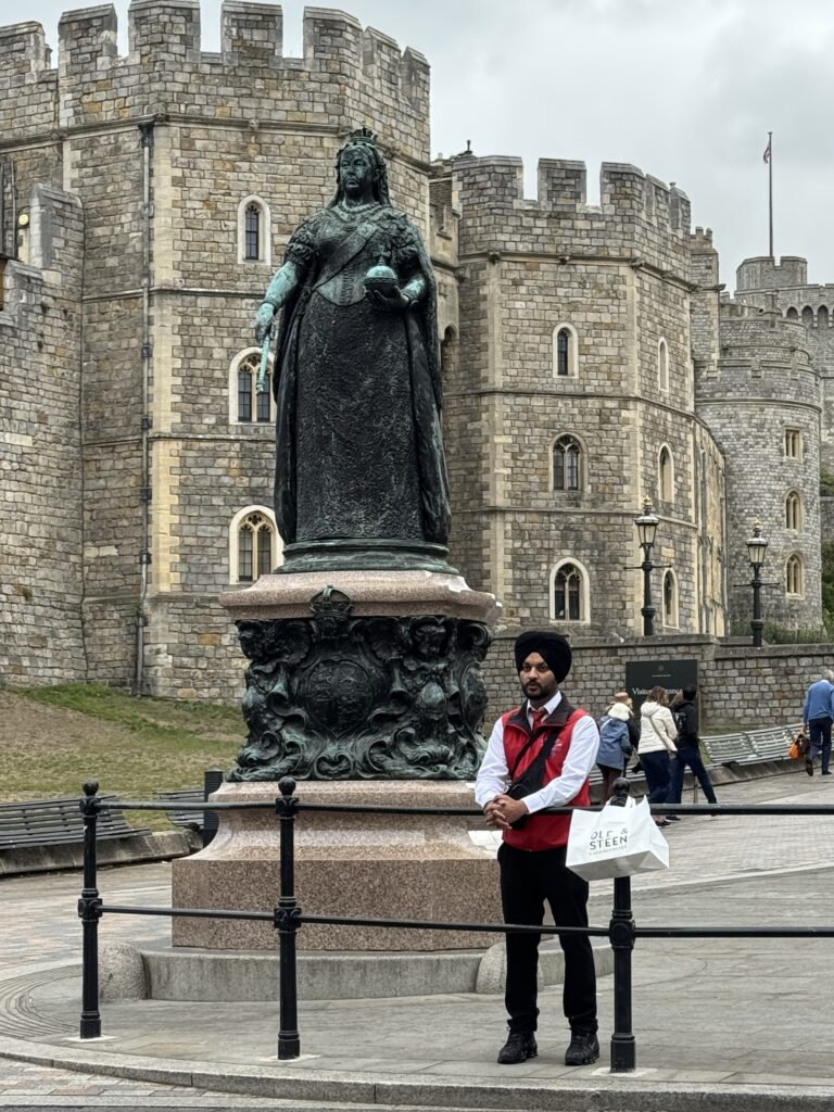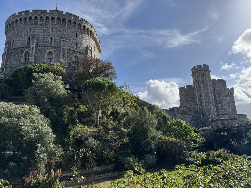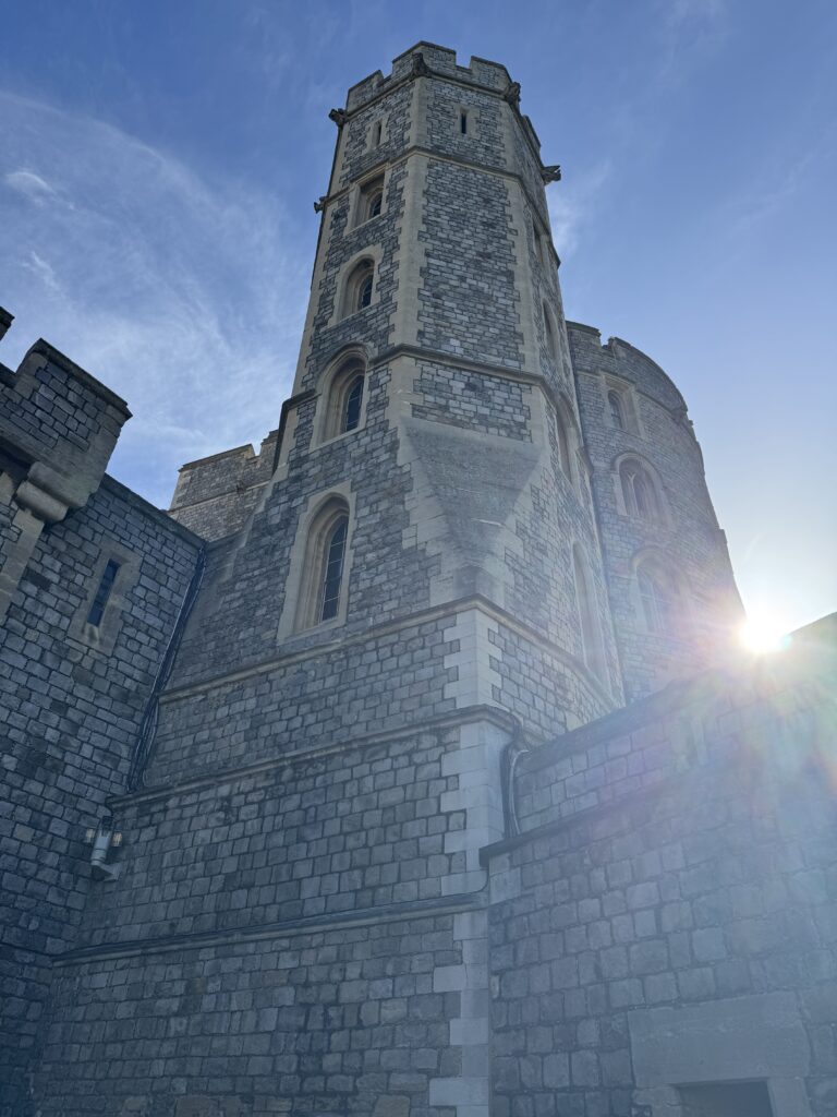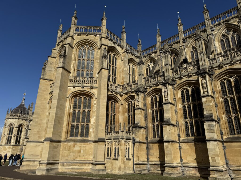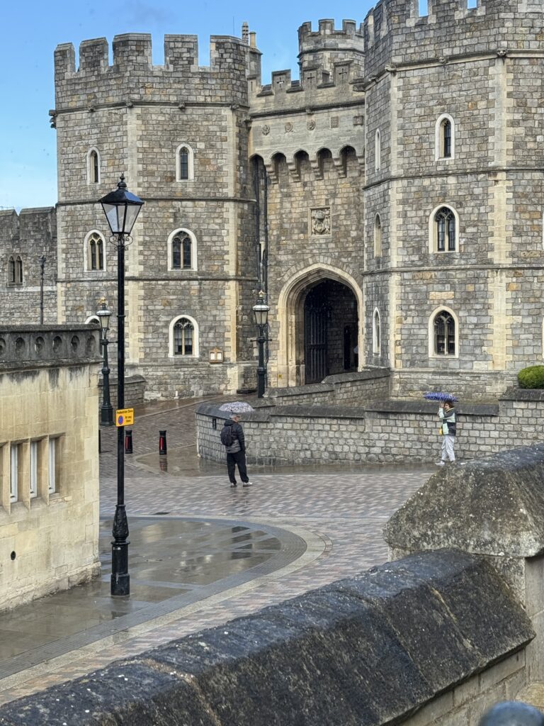 Our first stop was Windsor Castle and St. George’s Chapel. From the coach (not bus) park, we walked to Windsor Castle, about six minutes. Richard suggested that we start at St. George’s Chapel in order to miss the longer lines. We were not allowed to take photos inside any of the buildings, so enjoy the exteriors. Another ancestral connection – I am also a descendent of William the Conqueror, so apparently Windsor Castle is also an ancestral home.