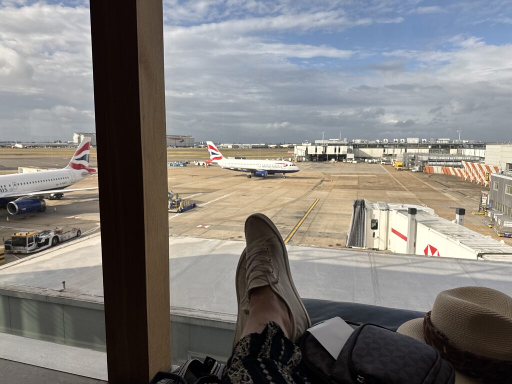 Check-in has been accomplished. Thanks to help from Point.me I’m flying First Class and Business class to London (not so lucky on the return)