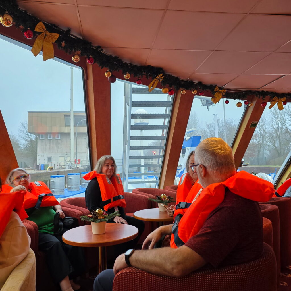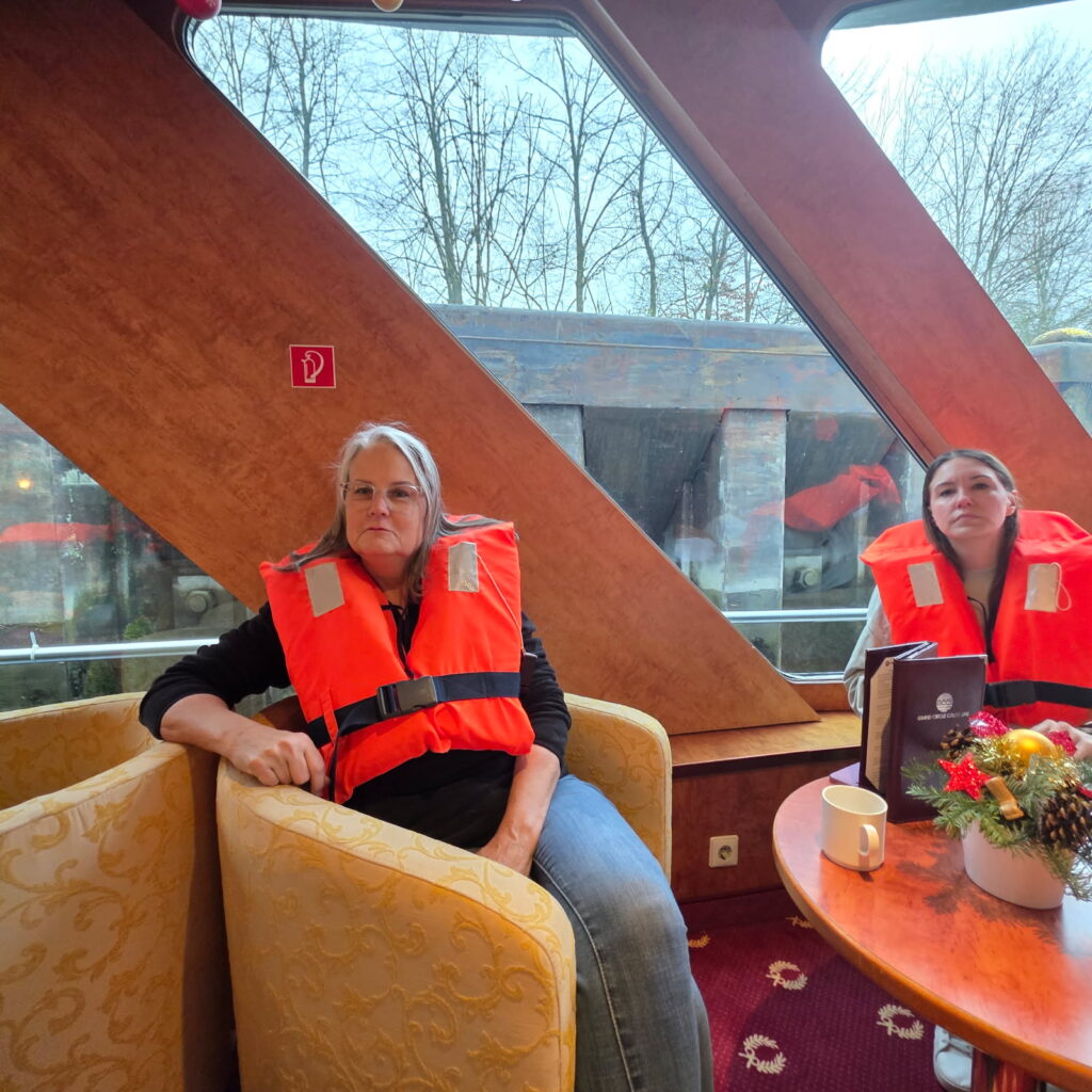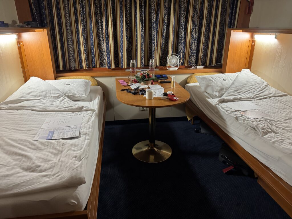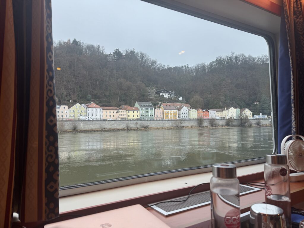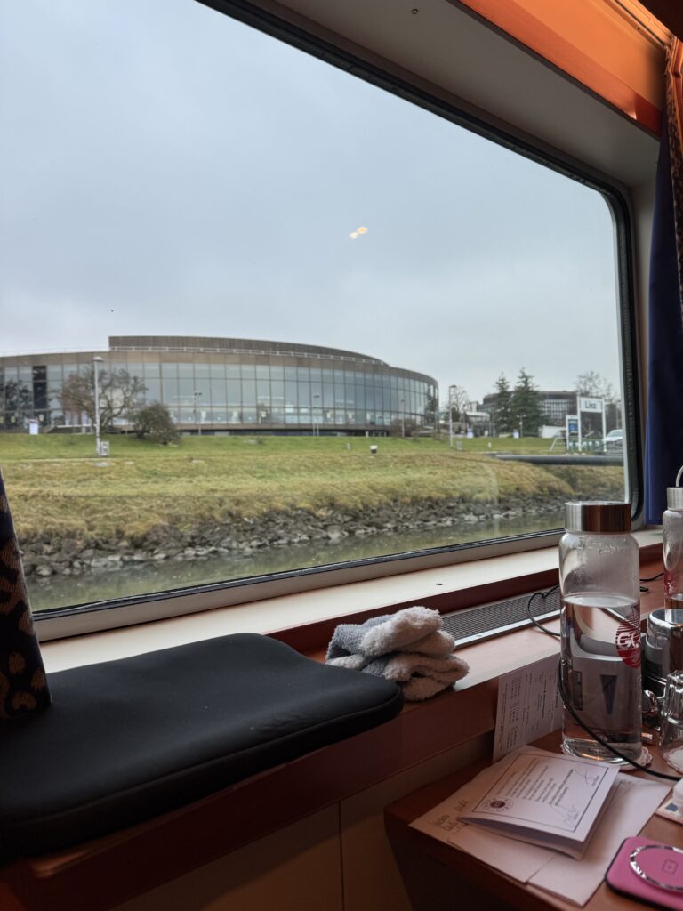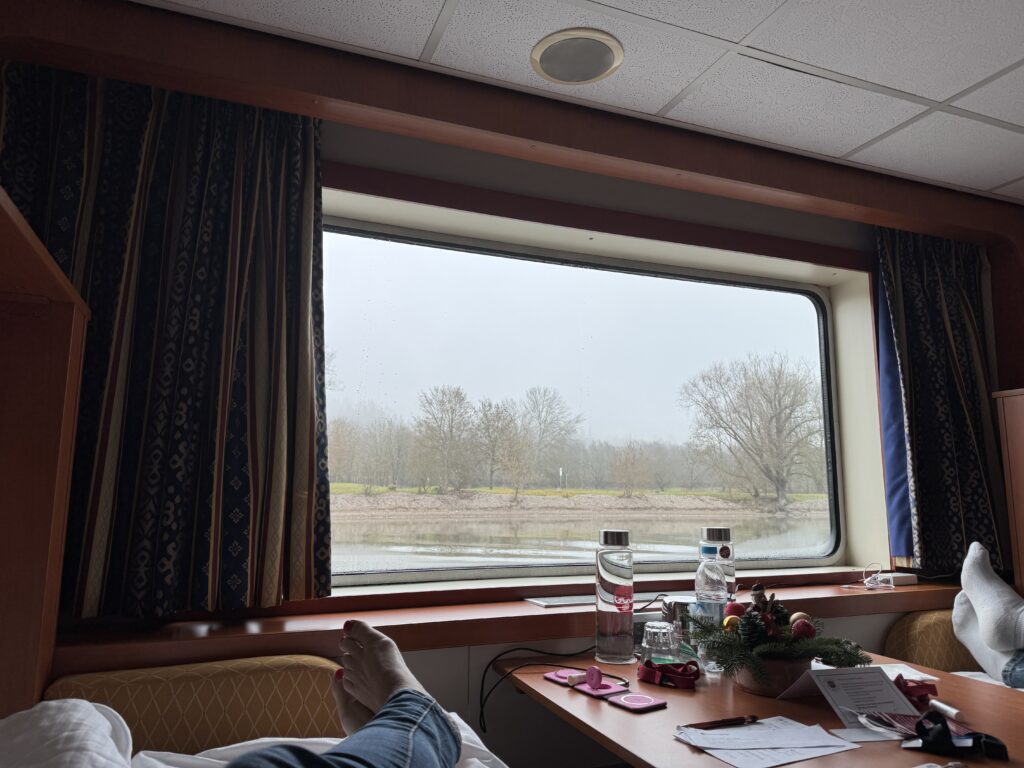 During our dinner the ship began to sail to Passau. We were tired so instead of going to the ugly Christmas sweater contest, we went back to our cabin to read.
