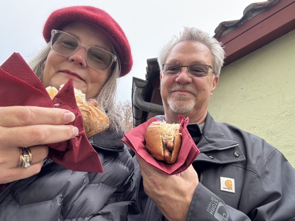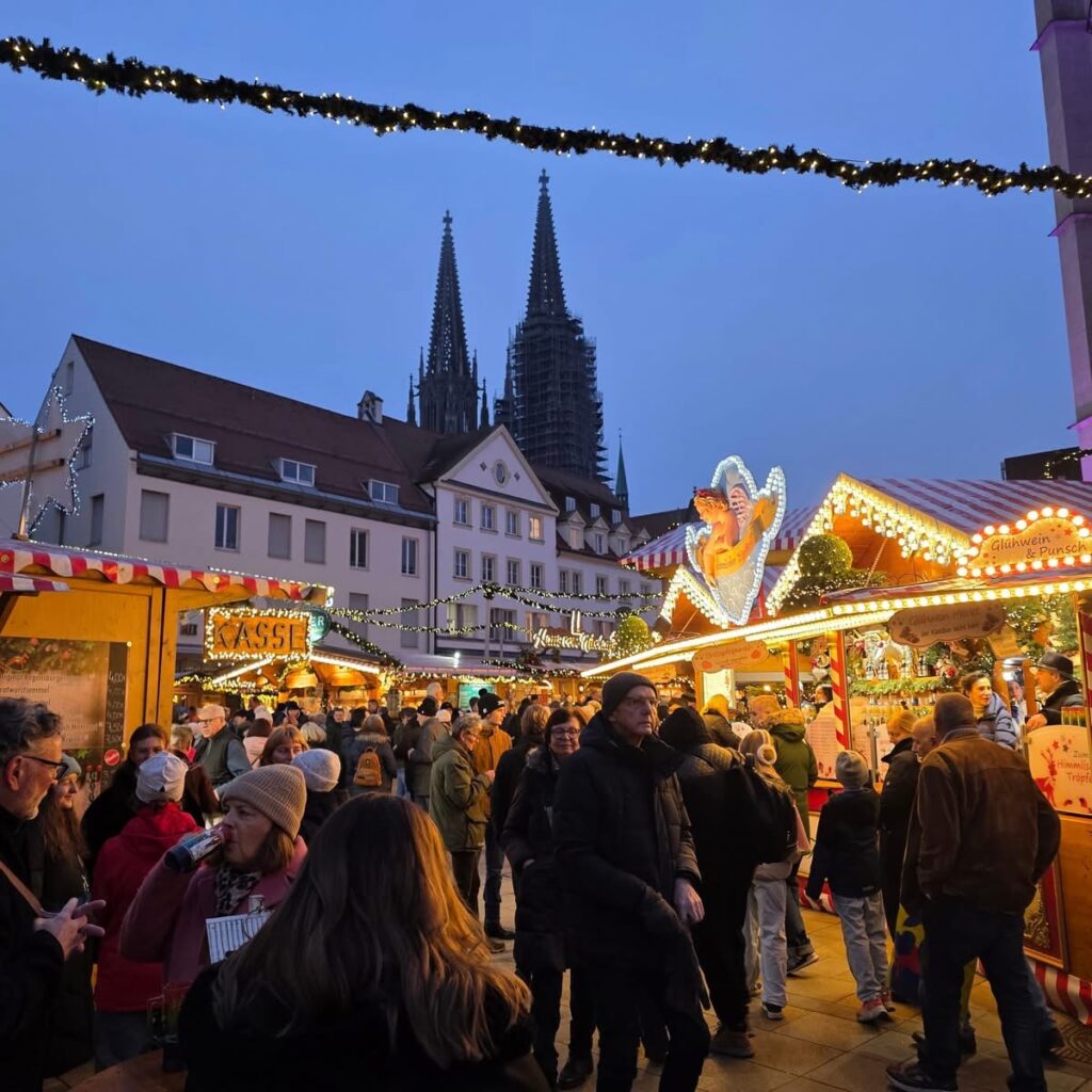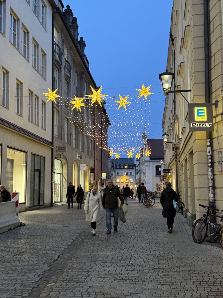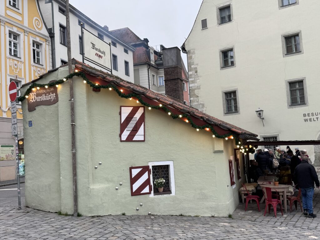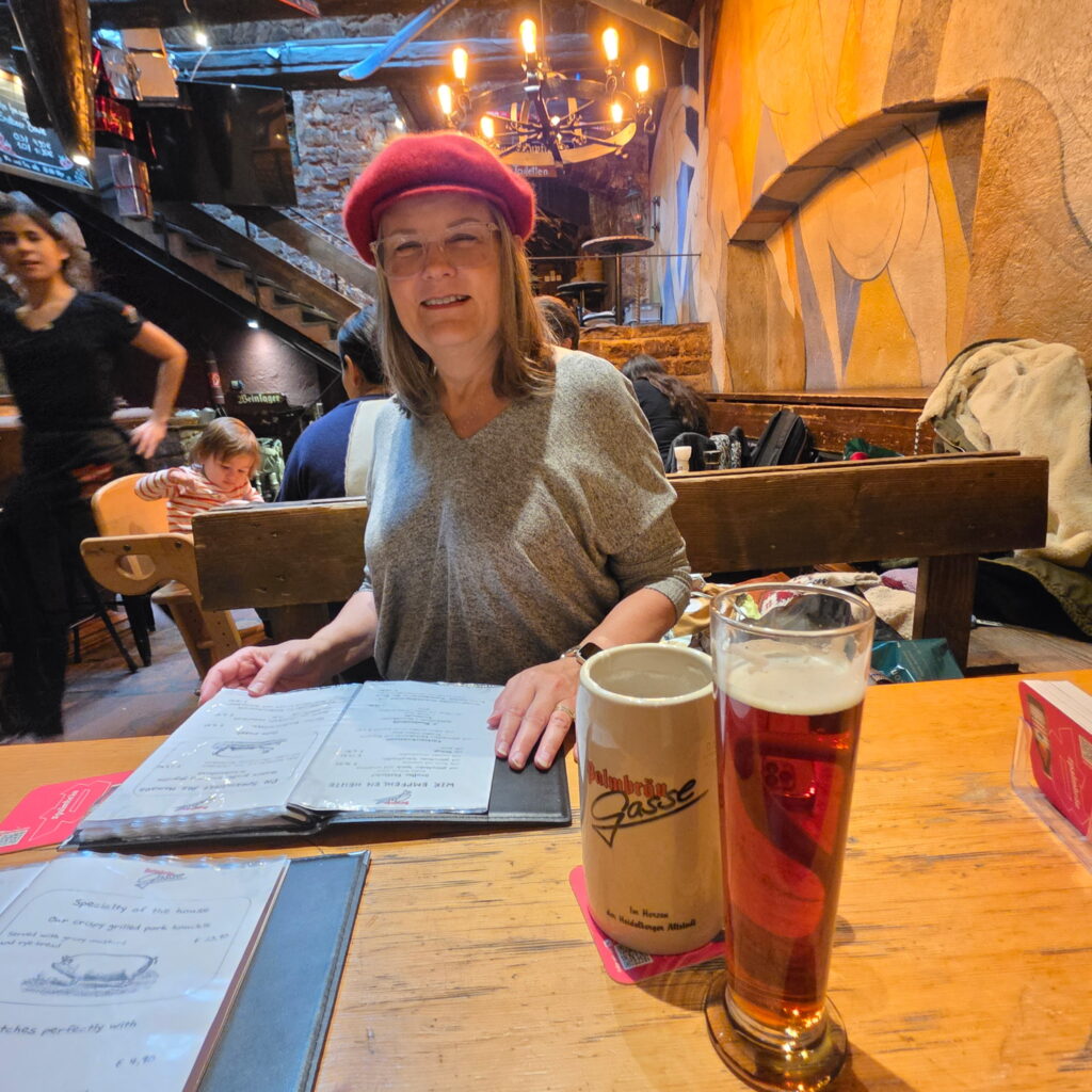 At the foot of the bridge is supposedly the oldest sausage kitchen in Germany, the Historische Wurstkuchl. It was built in 1616 and is still operating today. We continued on to see a few more sights including a small Christmas Market, the Goliath House, the Cathedral, and the main Christmas Market. Once we got to the main market, our guide left us to continue our tour on our own. We had our first mug of Glühwein in Regensburg and continued down more streets. We have a concert tonight by the Regensburg Girls’ Choir, so our dinner will be early. We decided to stroll back to our ship with a quick stop at the Wurstkuchl for a mug of Bavarian beer and then back to the ship.