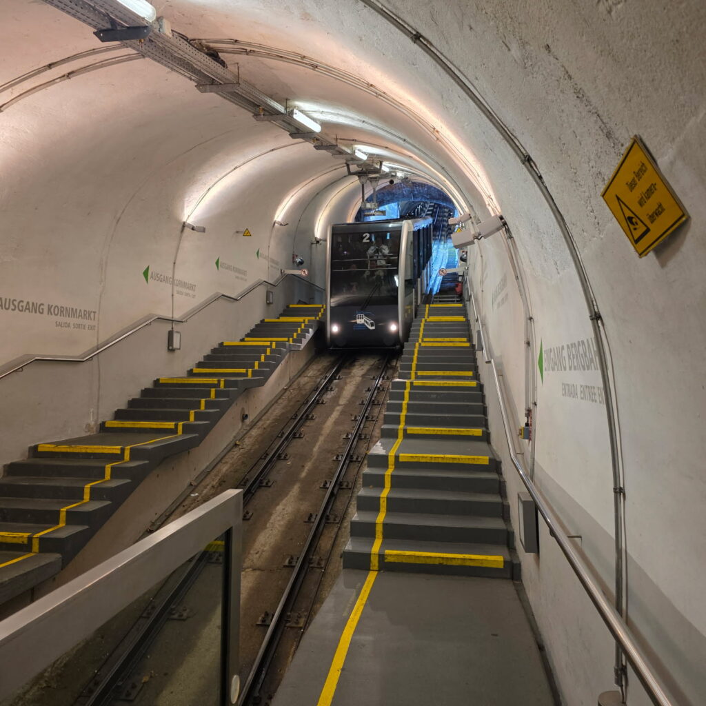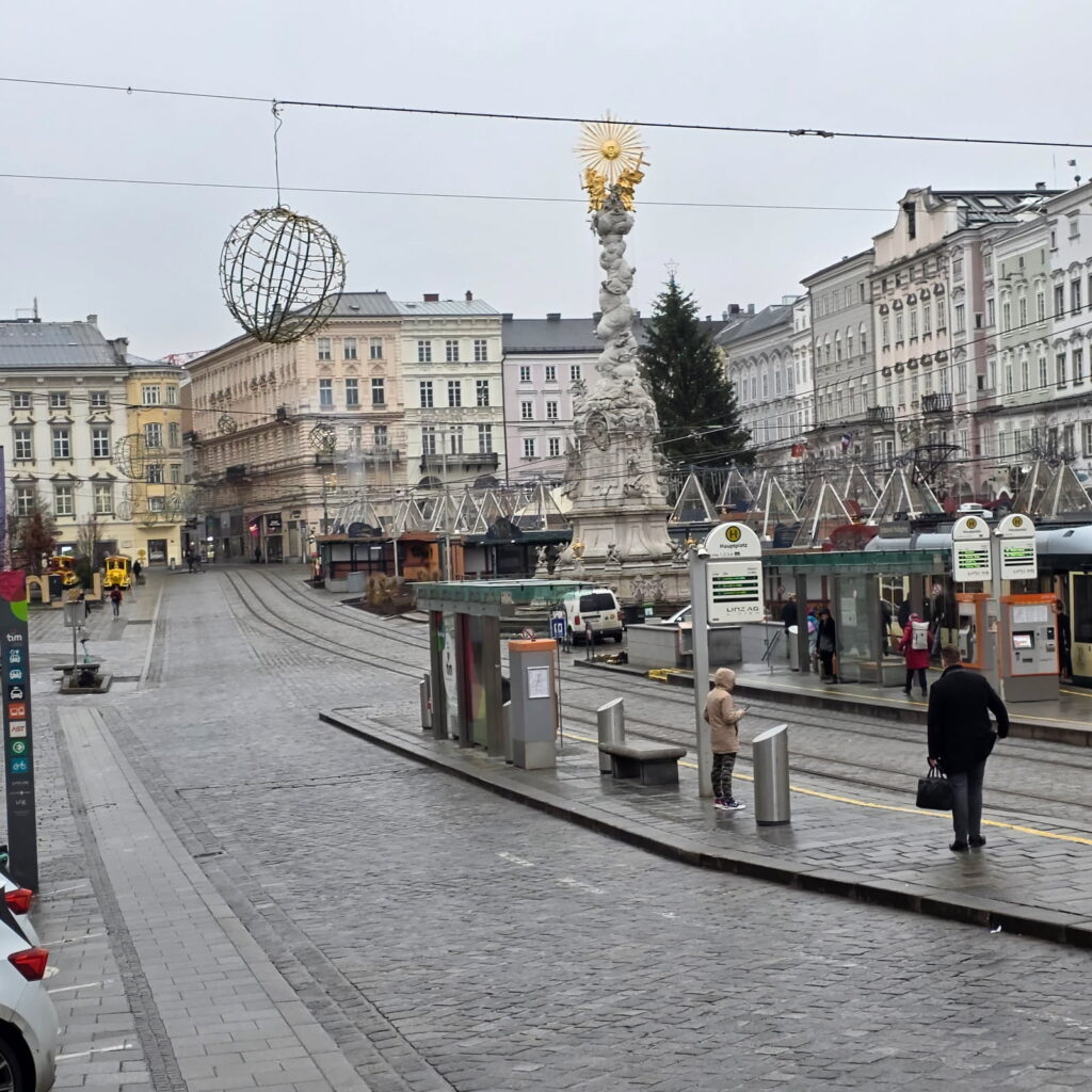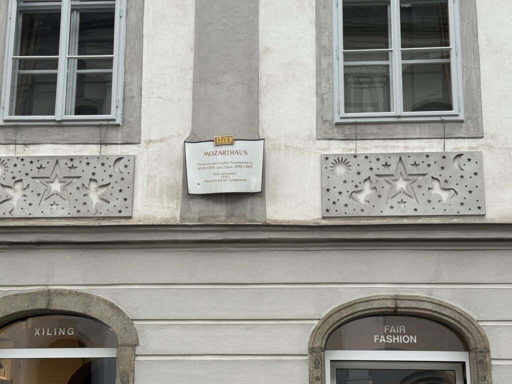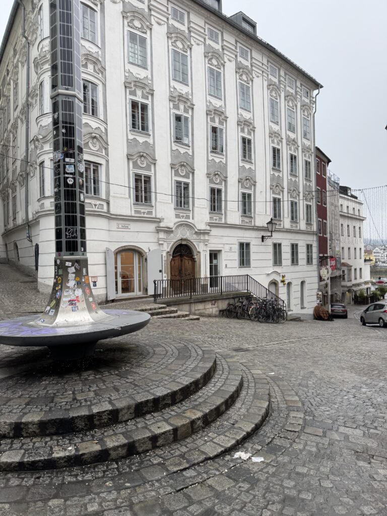 From the Hauptplatz, we took a side street and found a place where Mozart lived – for one night. Mozart’s first public concert was in Linz when he was six years old. This hotel is where he stayed with his parents and his sister. You can’t really blame them for using this to their advantage. Linz is a city of contrasts. They have both old and new in the same place. We found a small plaza where there was a very unusual fountain. Instead of a fountain of water, it was a fountain of light installed in 2018. There are solar panels all over it that glow when the sun goes down. We were here in the morning hours, so did not get to see it light up. From here we moved on to another plaza where we found another plaque commemorating the residence of Mozart, this time for three months, while he wrote the Linzer Symphony. Our guide returned us to the Hauptplatz and released us to explore Linz on our own.