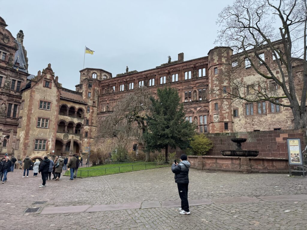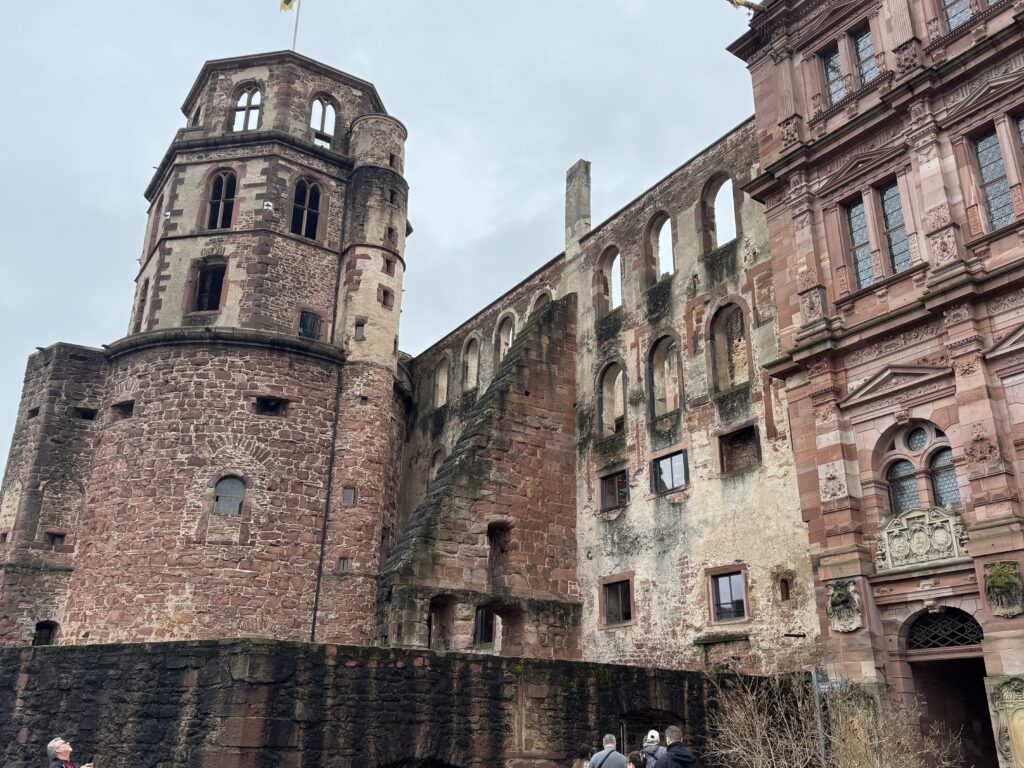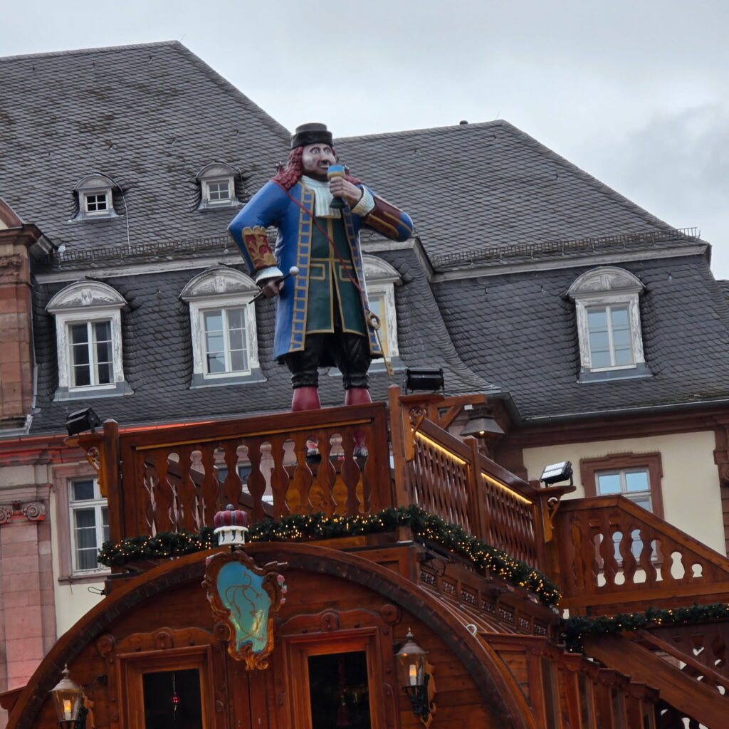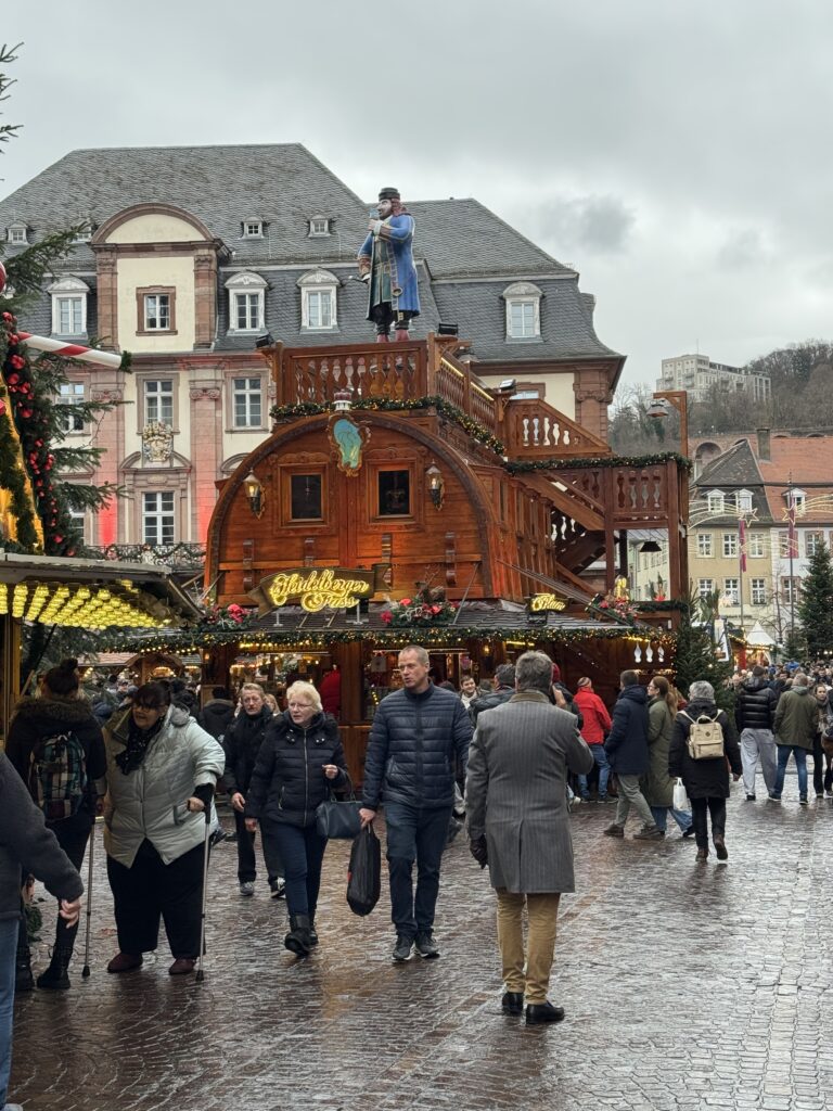 After breakfast (Frühstucke) we ventured out, this time our goal to make it to the main market and the Heidelberg Castle (Schloss). We brought our mugs from last night and headed out. Our first top was the Katie Wohlfort store. If you haven’t seen one of these stores, it is like a small IKEA for Christmas ornaments. You walk in the entry door and follow the path around the store in a veritable wonderland of Christmas. We were on a quest to find a pickle ornament for some of our friends. I would post a picture but I want to surprise them with what we found.