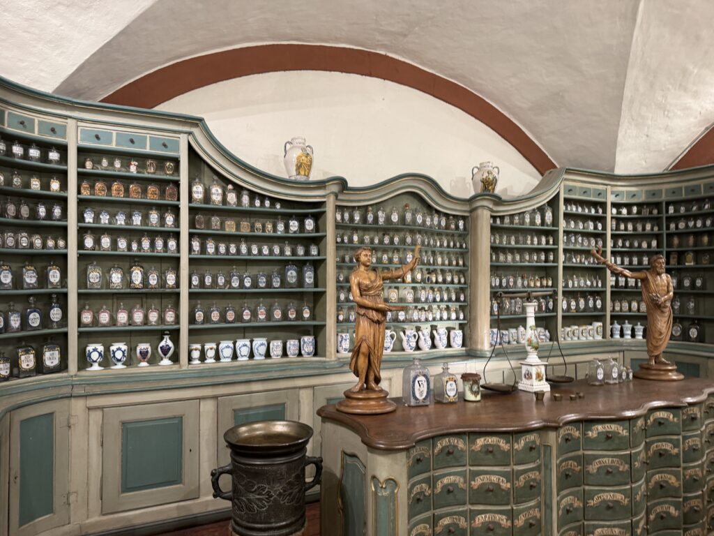 After wandering around a bit in the market, we decided it was time to ride the funicular up the mountain to the castle. What a gorgeous view from up there. We strolled around the courtyard, walked up to the top of the Big Barrel, perused the Apothecary Museum (one of the apothecary models reminded me of the Paris Apothecary in Outlander. Very interesting see some of the old medical instruments and procedures from the past. I have been practicing my German whenever I can and so far today, twice we have been mistaken to be German. I consider that a great compliment especially since my German is only passable! Thanks go to Frau Fritz my high school German teacher.