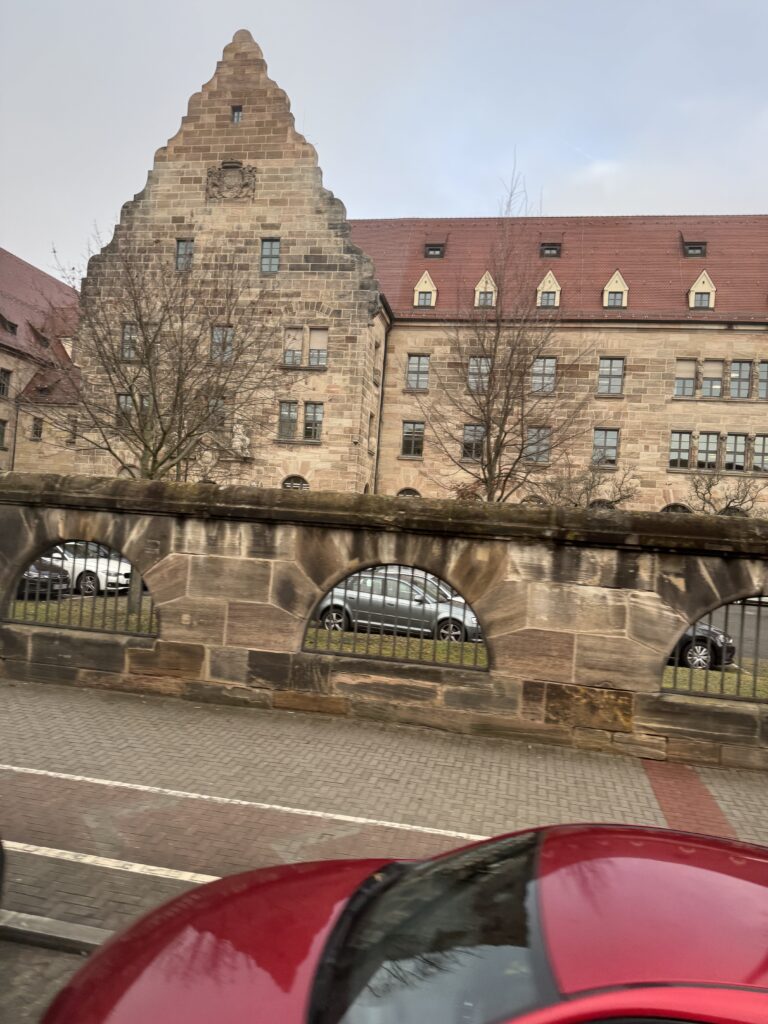 We boarded our bus again and continued our tour. Nuremberg has very interesting architecture. You can tell where the bombs hit as you will see very old buildings right next to very plain buildings built right after the war and then very modern buildings. Next we drove by the Nuremberg Courthouse which until just a few years ago was still quite busy. Now it still handles some cases, but usually not capital crimes. One of the reasons it was chosen for the trials was its proximity to the prison so that transporting prisoners to and from the courthouse was easier.
