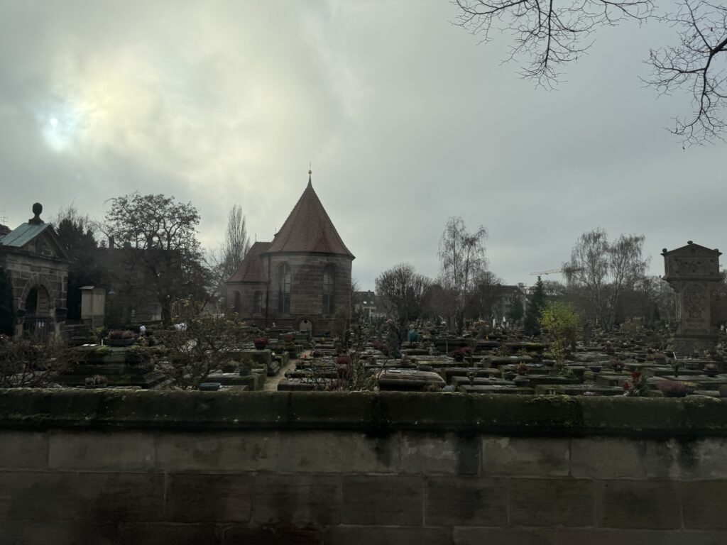 The last sight on our tour was the oldest cemetery in Nuremberg. In Germany, you rent your gravesite. If your relatives keep paying the rent, you get to stay. Once there is no-one left to pay the rent, they exhume the bones and take them to the bone house so that others can be buried in the gravesite.