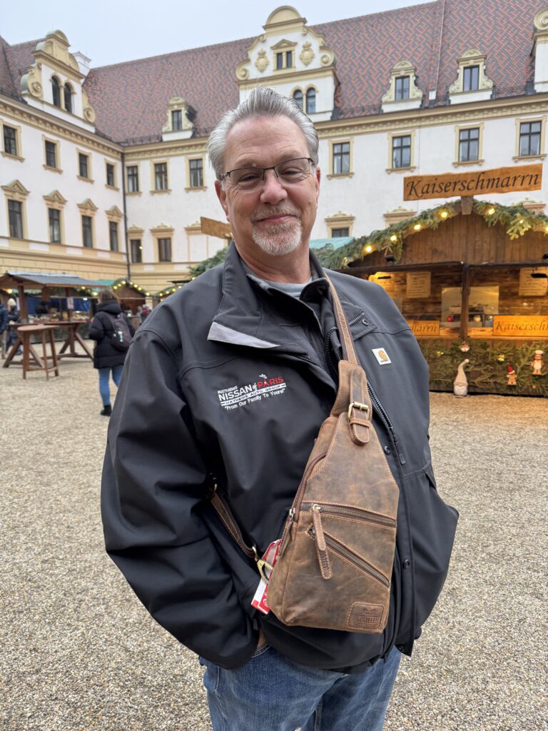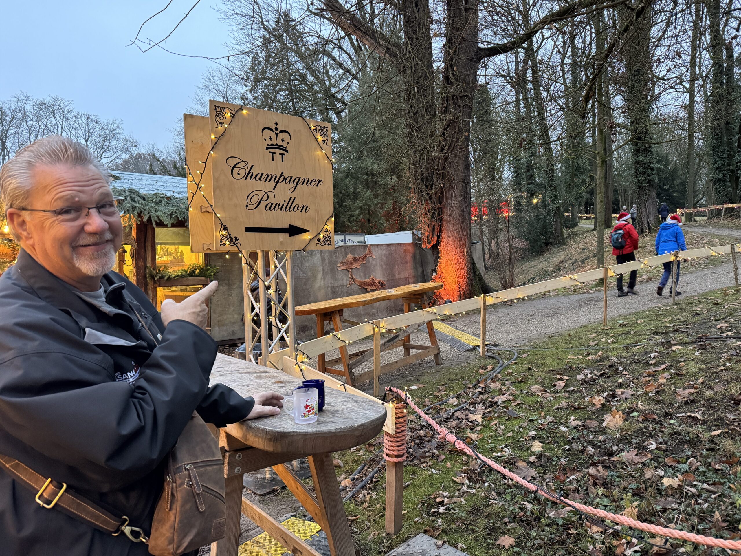 Speaking of shopping, Robert found his perfect bag – look at that smile! There was a pen with two alpacas named Max and Moritz, two famous children’s characters in Germany. Not only was this the “most romantic” Christmas Market it was also extremely beautiful. By the time we got to the Champagne Pavilion we were too tired to climb the hill, but it looked amazing. We found a cheese stand that had some very interesting cheeses, including coconut and lavender. They tasted a lot better than they sound! We bought some mountain cheese and some lavender cheese. Very unusual!
