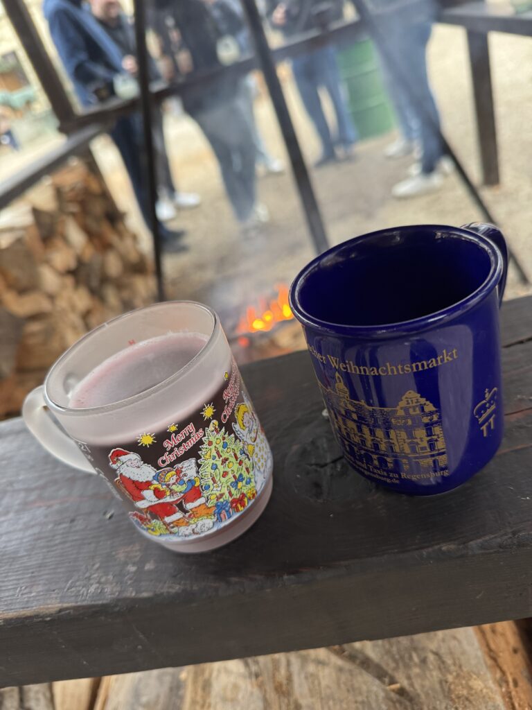 After lunch, we headed once more into Regensburg, this time to Thurns and Taxis Palace for the “most romantic Christmas Market in Germany.” This market had an entrance fee of 9,50 euros and it was well worth the price. It is on the grounds of the Thurns and Taxis Palace and is the largest we have seen so far. It was time, so another Glühwein…..There were places all over the grounds with “warming rooms” or fire pits where you could stop and warm up while you eat, drink, or shop.