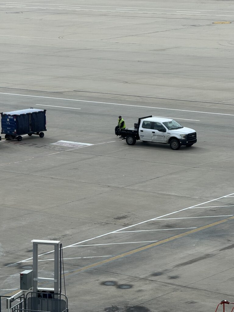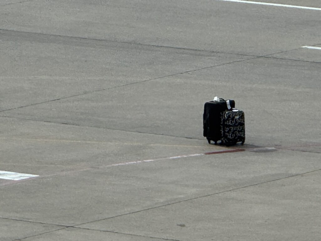 As usual we started in the Flagship Lounge with mimosas. However today the entertainment was a little unusual. While watching out the window we saw some lonely luggage on the tarmac.