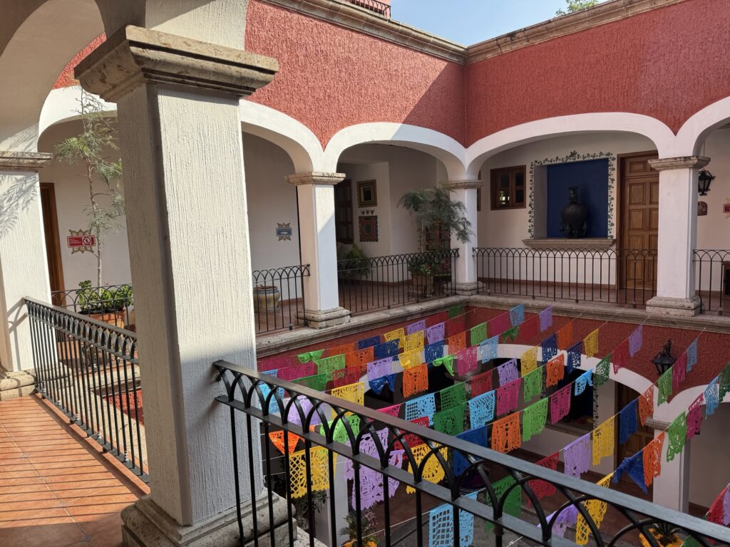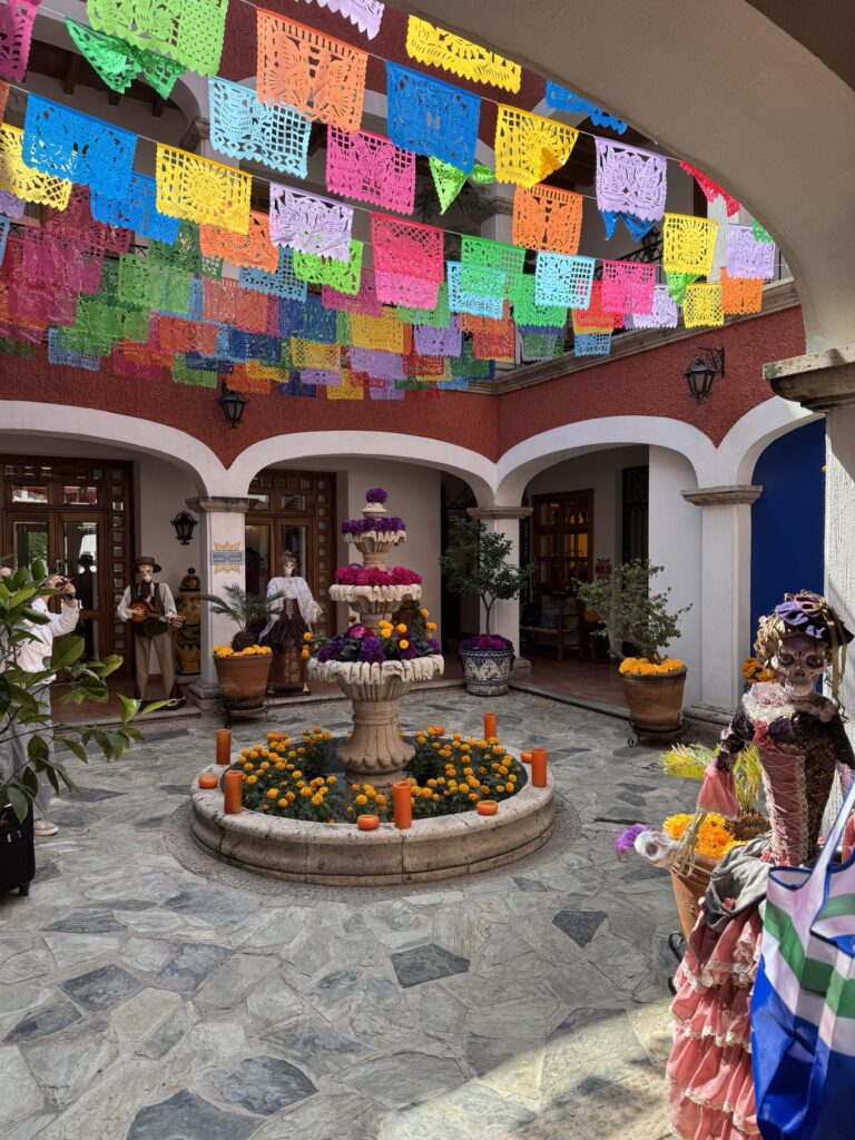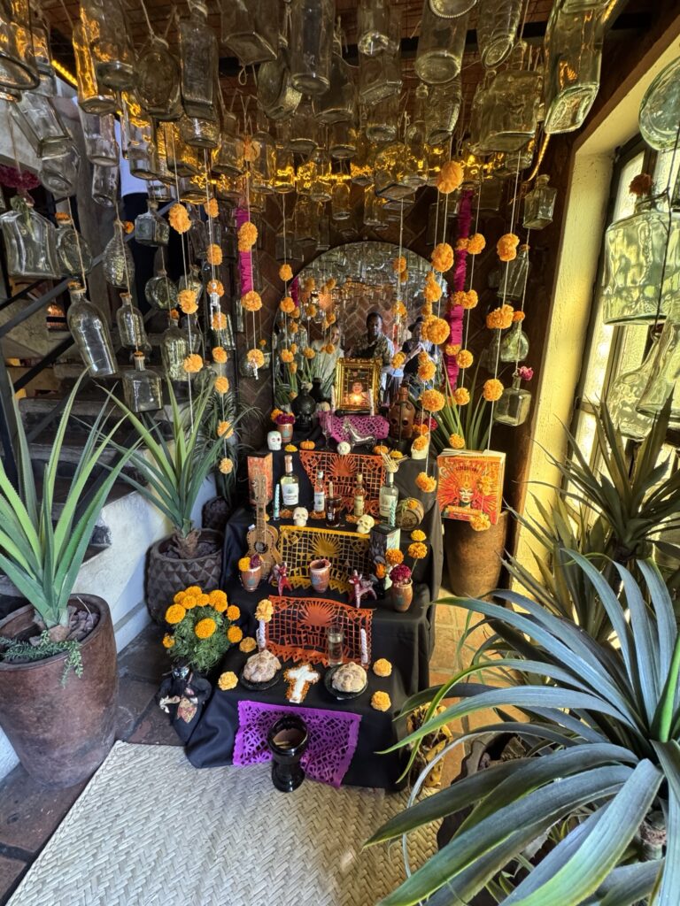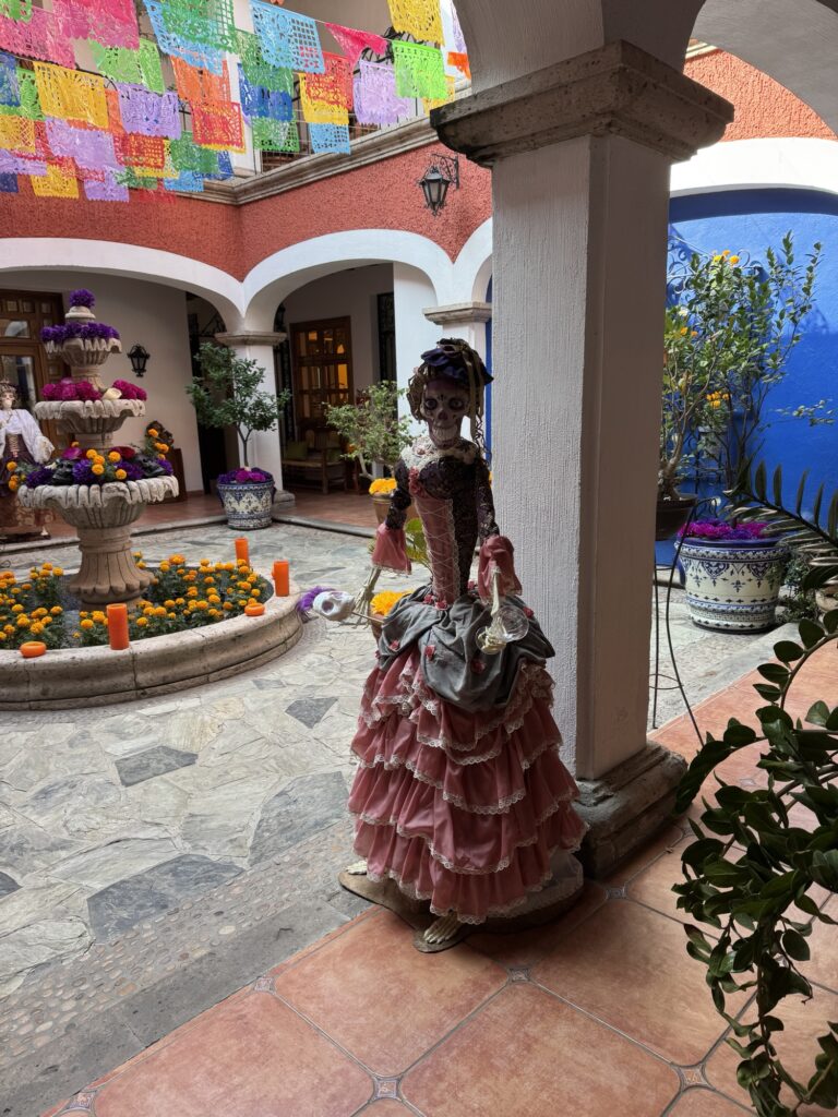 Once we arrived in Guadalajara, we were transported to Tlaquepaque where we checked into our home for the next two nights at Casa Morales. This boutique hotel only has seven rooms, which was perfect for our group which required five of the seven. The hotel felt like we were staying in someone’s home and our hosts only added to that welcome. As everything in town, the hotel was decked out for Dia de los Muertos (Day of the Dead).