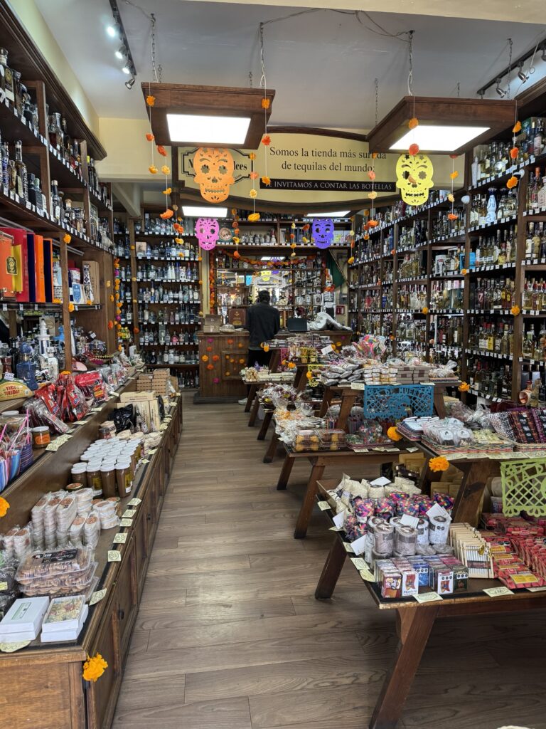 We made a quick stop at a bottle shop to buy our first bottles of tequila. Cascahuin Tahona was about 2/3 the price we find in the states, so Robert purchased one 750 ml and another 375 ml to share on the bus, as is the custom on these trips.