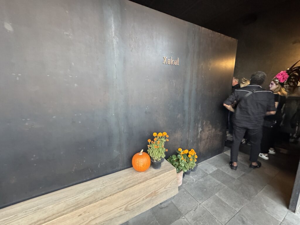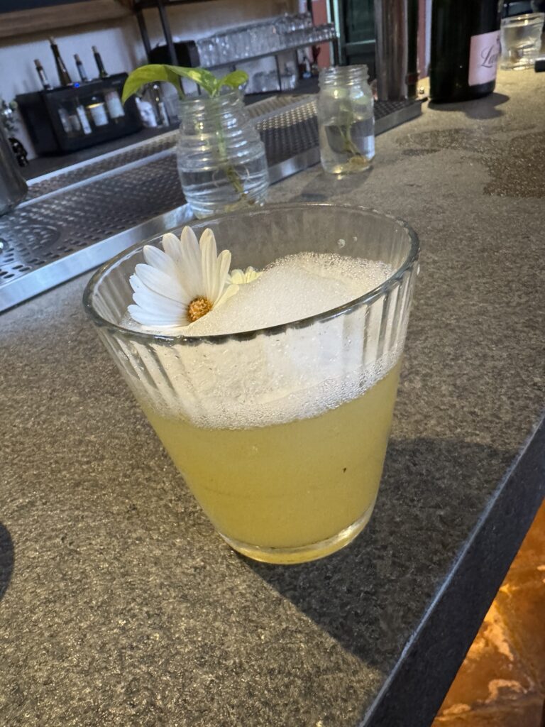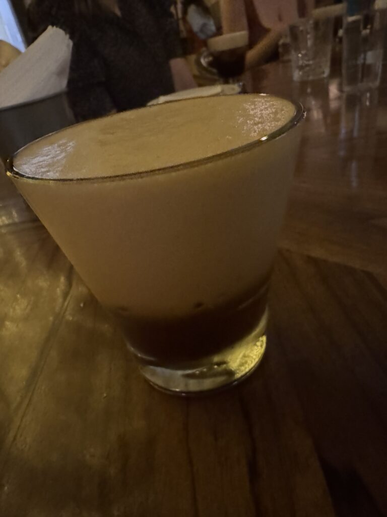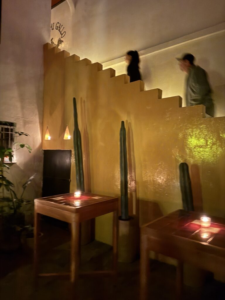 After strolling the streets for a while, it was time to enjoy our first drink. Robert, of course, ordered tequila, but I chose a tequila cocktail, called the Xicalco, that consisted of pineapple juice, mezcal, pineapple syrup with jalapeño, and “salted beer air”, which we learned was a foam made from beer and salt. It was beautiful and tasty!