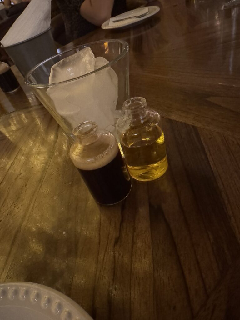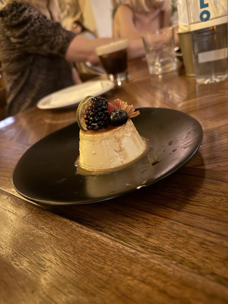 After enjoying our drinks it was time for our dinner reservations at Casa Luna. Blaine, our fearless leader, ordered for the table. I was so engrossed in tasting all the delicious food, I forgot to take photos! I did remember to get pictures of our desserts and our dessert drink, a Carajillo. A Carajillo has only two ingredients, espresso and Licor 43 in equal amounts. Our server took the two small bottles and poured them in a shaker over ice until rich and foamy and poured them into our glass. It was a perfect complement to the sweet corn bread and flan we had for dessert.
