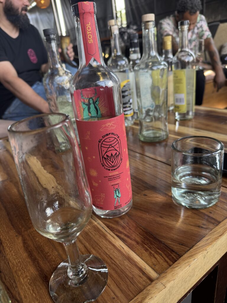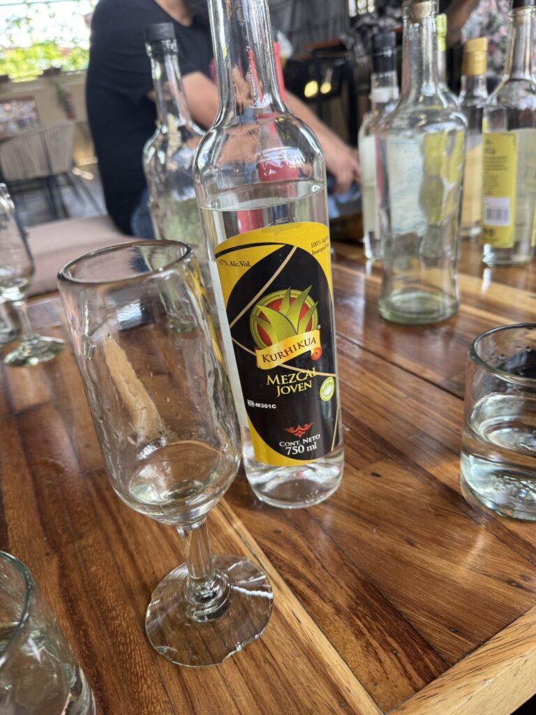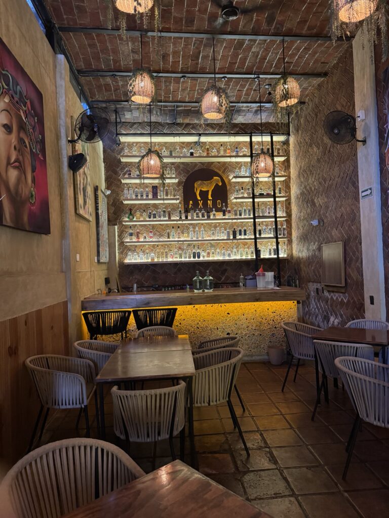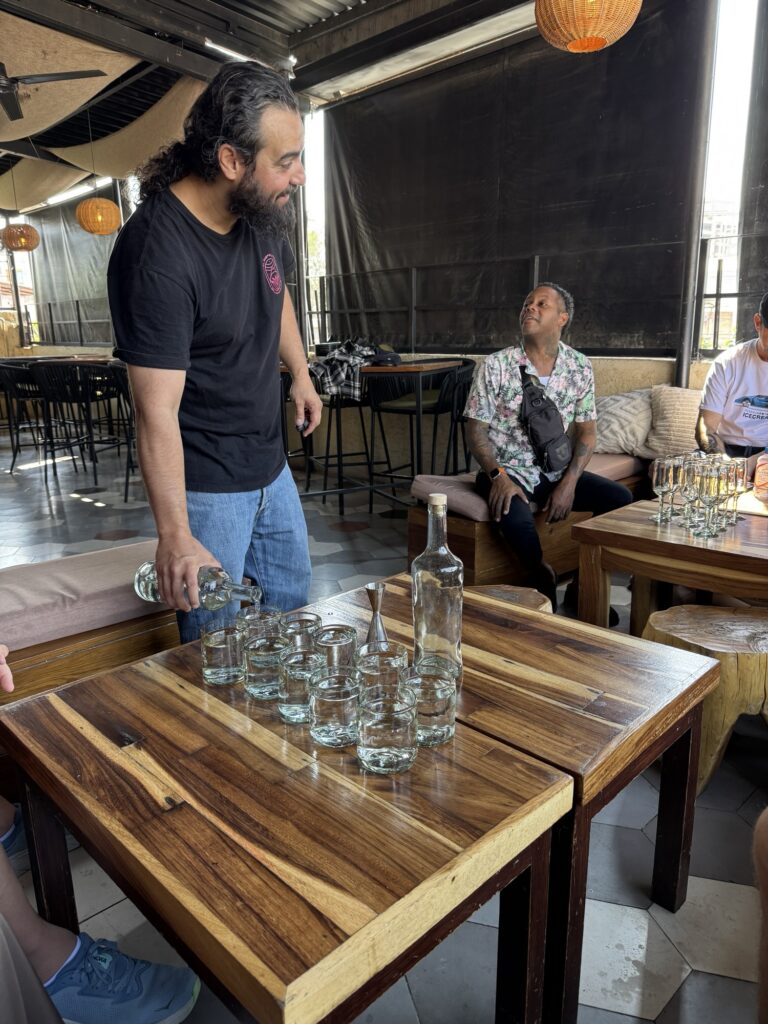 Today we head for our first tequila tasting! Our original venue for the tequila tasting cancelled on us so, a quick call to Pancho and, Blaine had another tasting set up at Axno with Espiritu. At Axno, Espiritu explained that he had many tequilas with which we were acquainted, but today we would be tasting other agave distillates that are produced in much smaller batches. We were introduced to raicillas, sotols, and palmillas as well as a couple mezcals. These are all made from agave but are not considered tequila.