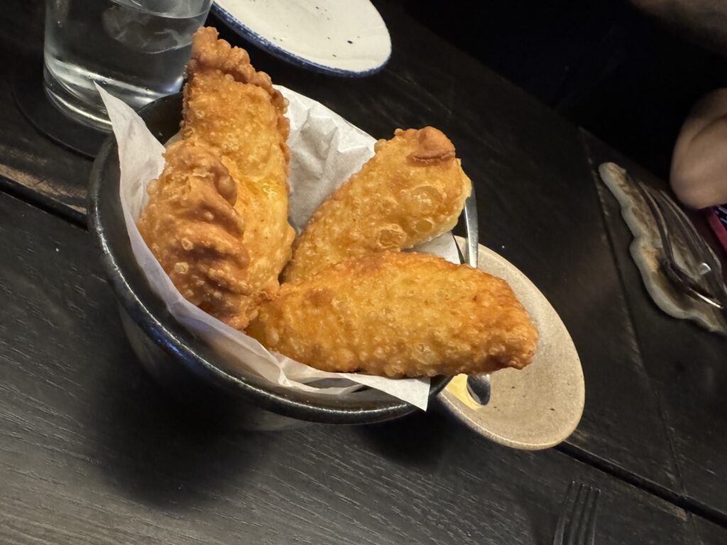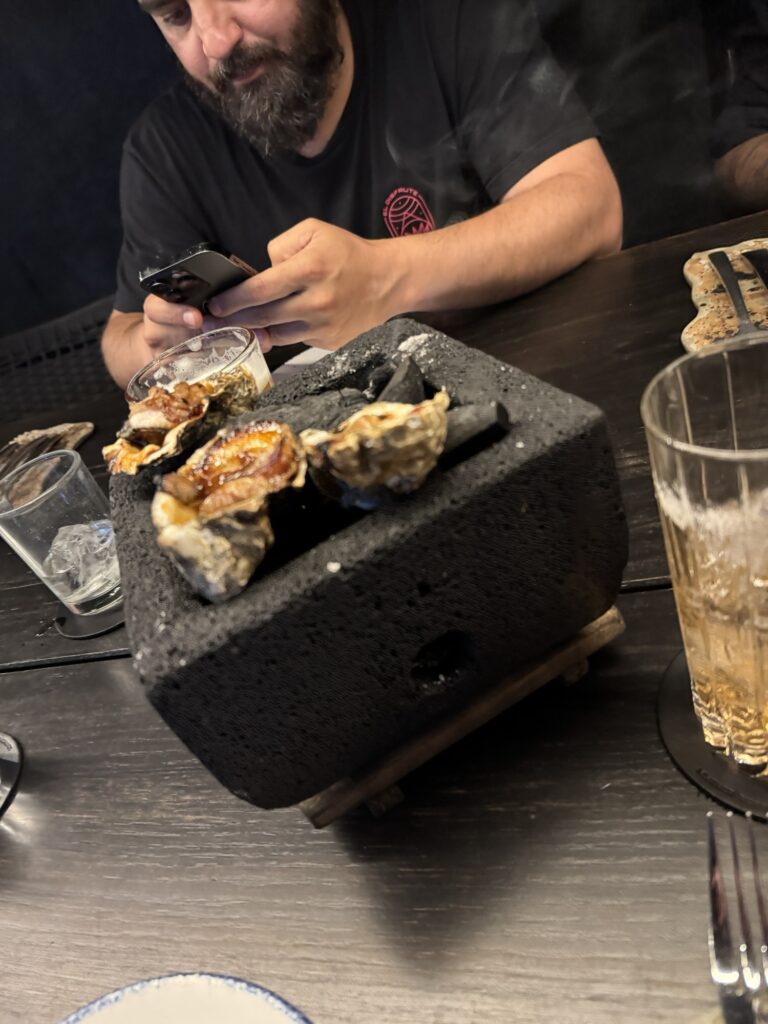 The first course consisted of the most delicious grilled oysters I have ever tasted served over hot rocks, Xokol’s signature corn tortilla, a meatball in a delicious sauce, and crispy empanadas.