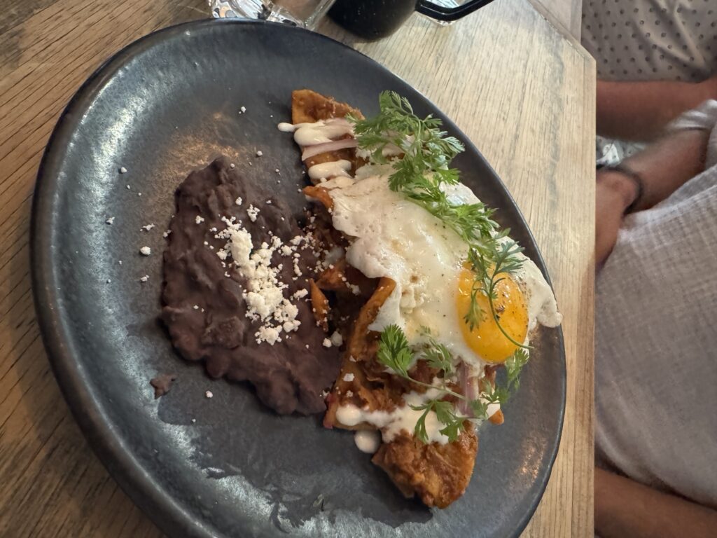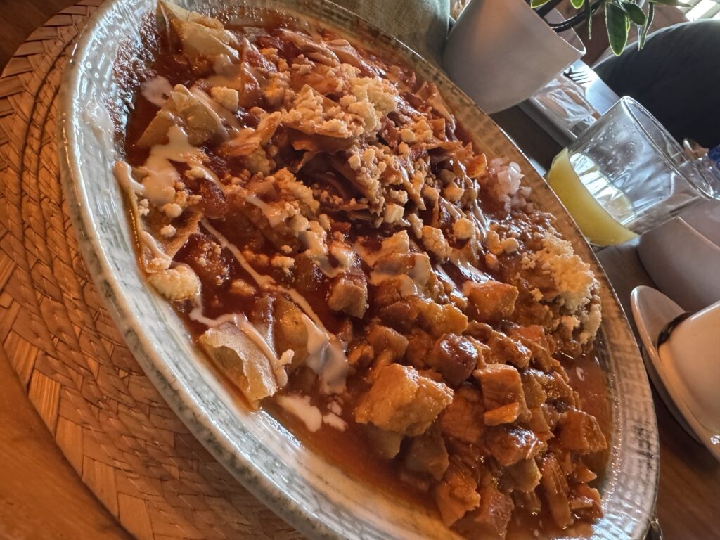 Another trip to the main street of Tlaquepaque for a final look (and to find the ATM again) and it was time to checkout. We stopped at the Brick Lane Food Truck for breakfast and some of the best chilaquiles in the world. Robert ordered Enchiladas Suizas on the advice of the server and mimosas for the table. We finished the meal with fresh apple pie a la mode.