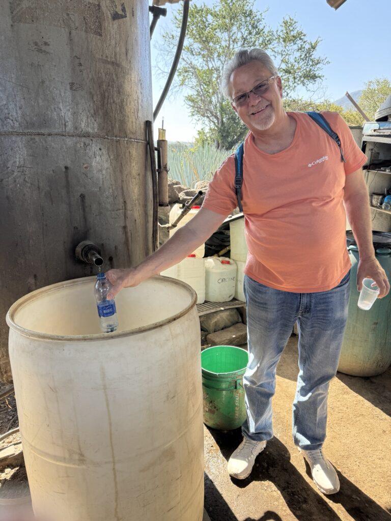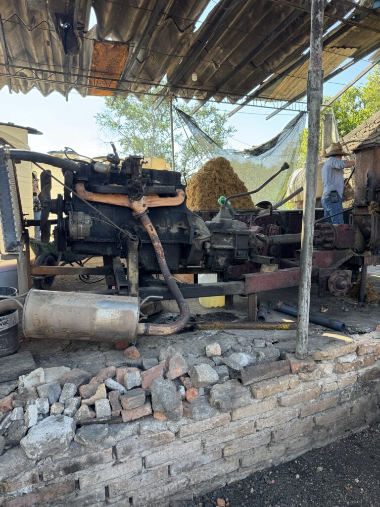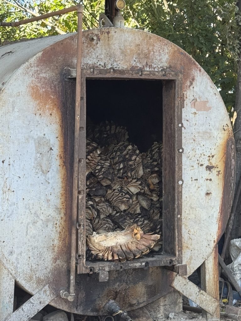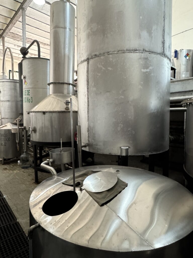Caballito Cerrero has been making an agave spirit for centuries, at least as far back as the 1600’s (more on that later.) It is still family run by the Jimenez family. One of the things they have done well here is to use gravity to help with the process. The agave plants are on the side of the mountain and the pinas can be rolled down the hill to the trucks. The ovens are loaded from the top so the pinas can be rolled from the trucks into the ovens. The ovens are unloaded from below where they can be rolled to the shredder. Once the agave is shredded it can be rinsed and put in the fermentation tank and then the stills.