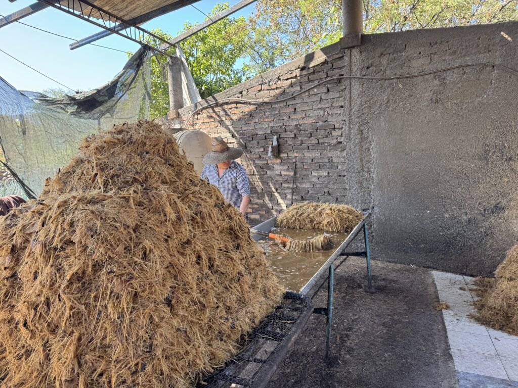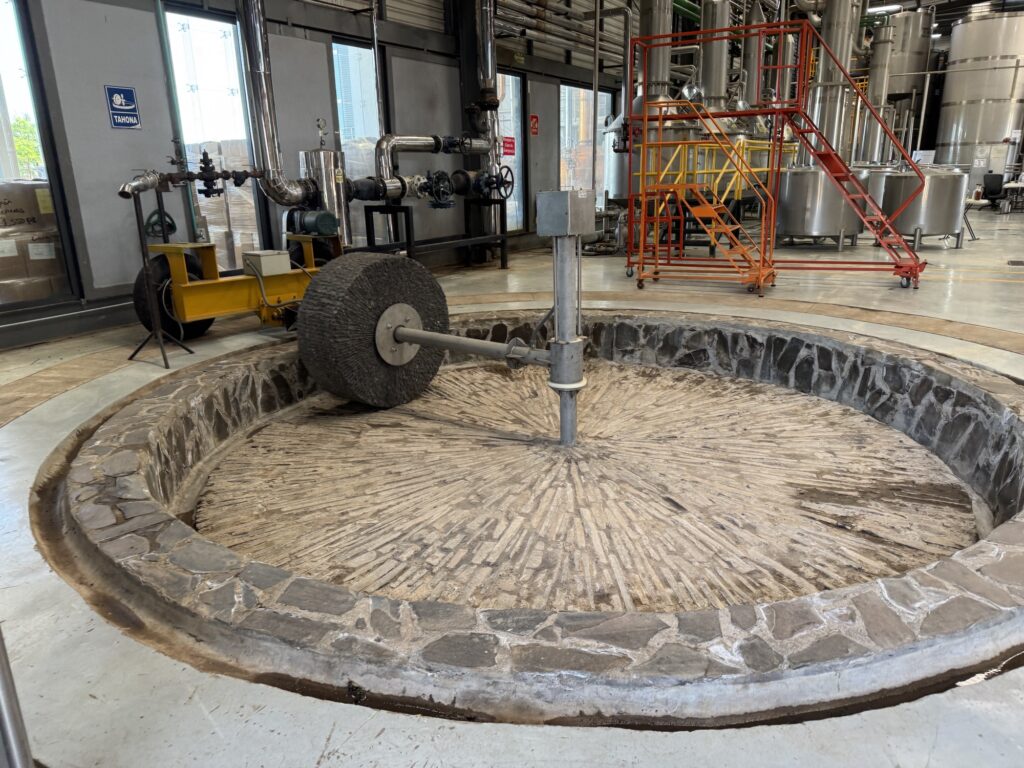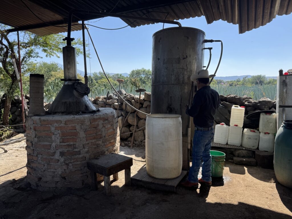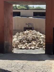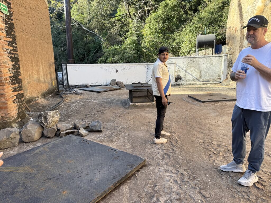 Caballito Cerrero has been making an agave spirit for centuries, at least as far back as the 1600’s (more on that later.) It is still family run by the Jimenez family. One of the things they have done well here is to use gravity to help with the process. The agave plants are on the side of the mountain and the pinas can be rolled down the hill to the trucks. The ovens are loaded from the top so the pinas can be rolled from the trucks into the ovens. The ovens are unloaded from below where they can be rolled to the shredder. Once the agave is shredded it can be rinsed and put in the fermentation tank and then the stills.