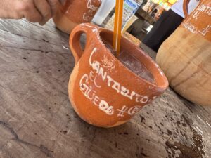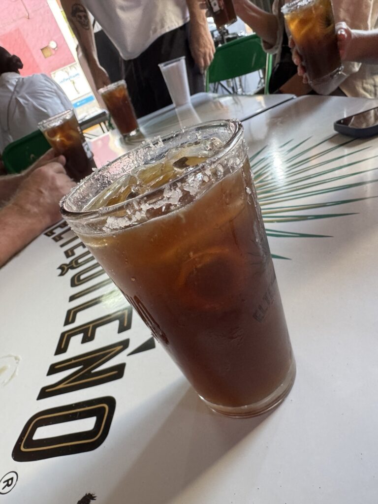 After breakfast, we headed towards Tequila. We made a quick stop at Cascahuin to buy a couple bottles. After that quick stop, we stopped at Cantaritos El Guero #1 to experience the largest cocktail I have ever seen. A Cantarito consists of freshly squeezed lime juice, salt, orange and pineapple juice, tequila reposado, Squirt grapefruit soda, and ice. Blaine ordered a “two bottle” cocktail for our group. It took two of our men to carry it to the table! When all was said and done, we were only able to drink half of it, though we tried our best. 🤷♀️