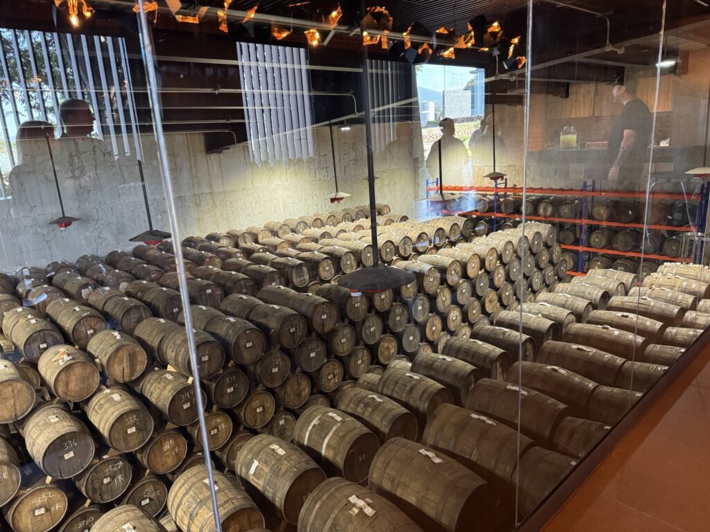 The barrel room at Caballito Cerrero consists of only sixteen wooden barrels. Unlike other distilleries, Caballito reuses their barrels over and over and they do not refresh them with new chars; what you see is what you get. They stick to the recipe and do not deviate. So far, it has served them well. We were treated to tastes right from the barrels. My favorite was the reposado that was aged in French oak. It had hints of wine in its aroma and taste. I liked it enough to purchase two bottles!