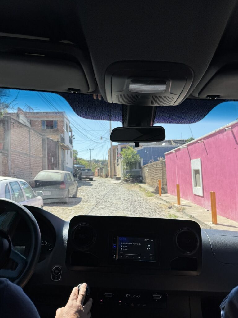 The last stop was for drinks at Farmacia Rita Perez, a local spot in Guadalajara. After a tequila espresso martini for me and a tequila for Robert, Robert and I and our friends, Billy and Mo, decided that we were done for the evening and called for an Uber to take us back to our hotel. For the second time in my life, I was convinced I was about to be on an episode of Dateline. Everything started out fine until I looked at the GPS the driver was following and saw that it was showing only a ten minute drive. I was pretty sure we were at least thirty minutes from our hotel….Next thing we knew, he was pulling into an industrial area with a number of warehouses where trucks were being loaded. He stopped in the middle of the warehouses and announced that we had reached our destination, though, he did not recommend we get out because it wasn’t a safe area. After checking the addresses, we realized that Casa Morales in Guadalajara is not the same as Casa Morales in Tlaquepaque.