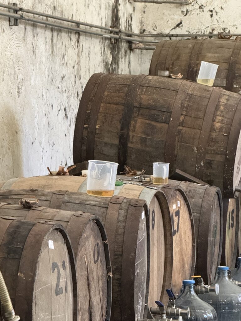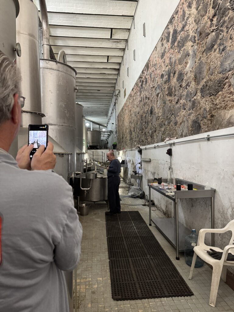 Today we visited a very different kind of distillery. After checking out of Casa Salles, we once again we drove down some very rough dirt roads along the mountainside to reach Caballito Cerrero. Thankfully, there was little walking to get to the main facility and with Robert’s arm to lean on, I was able to make it through the tour.
