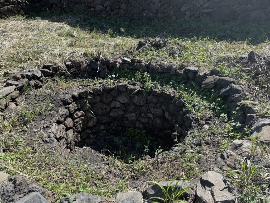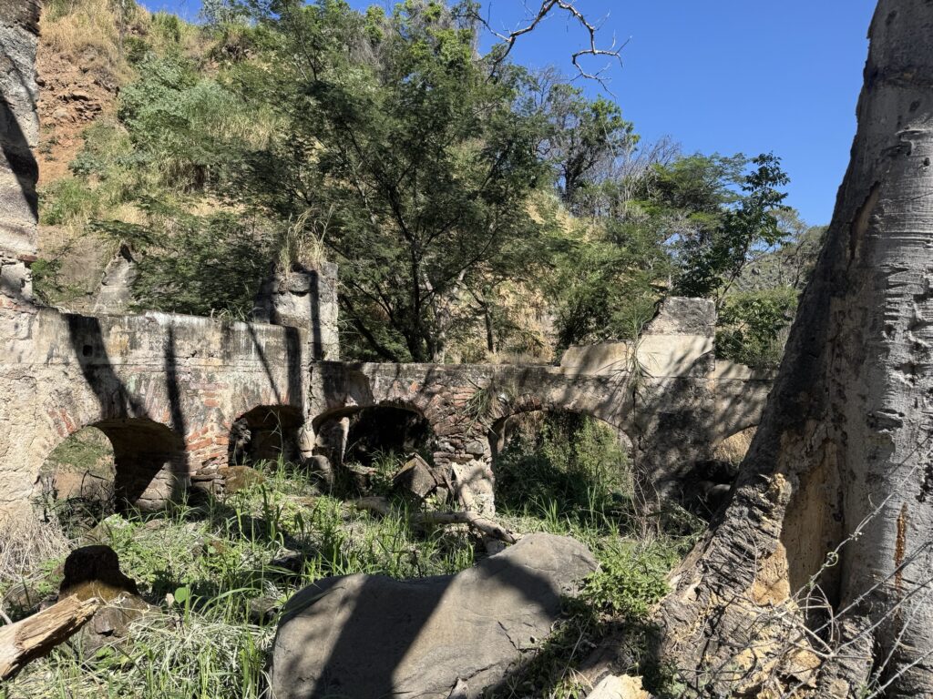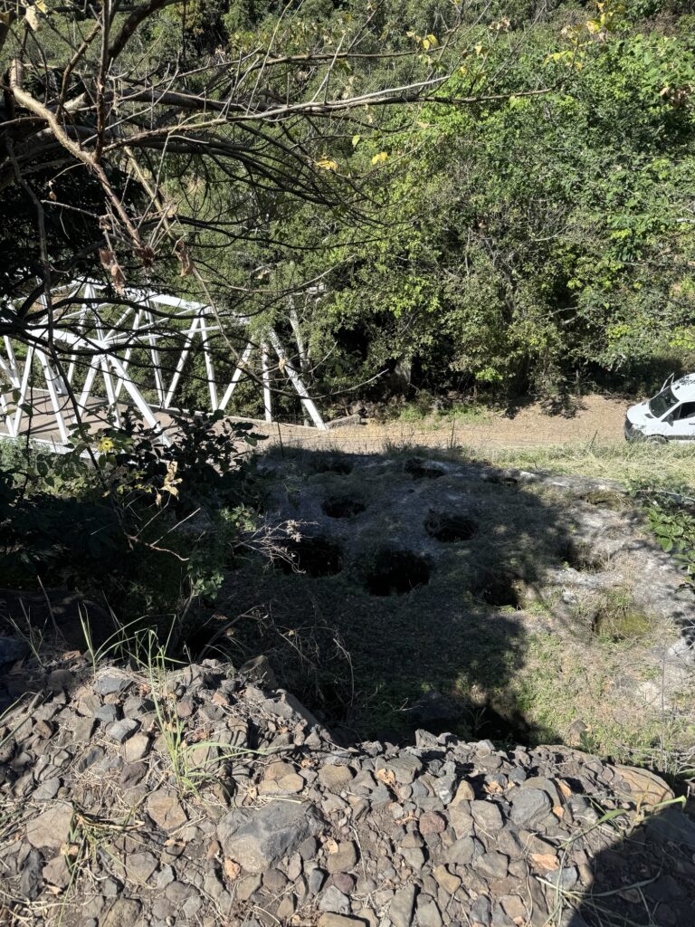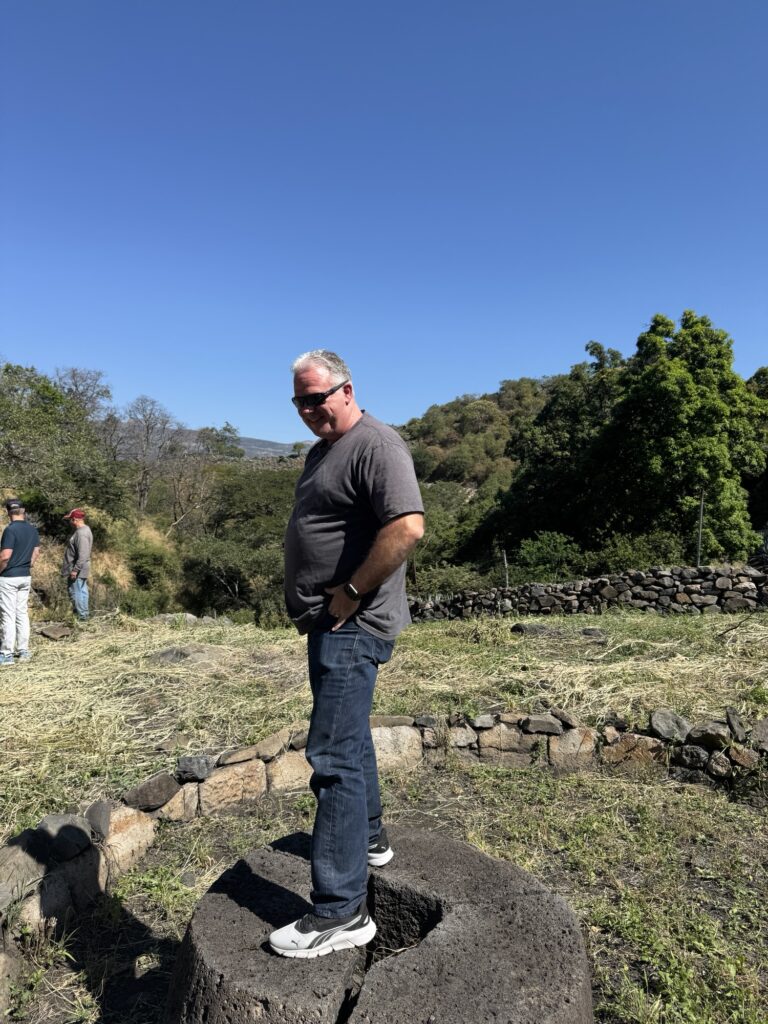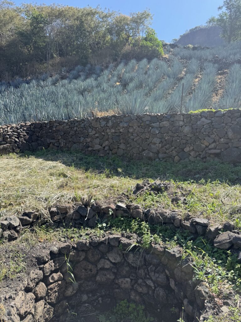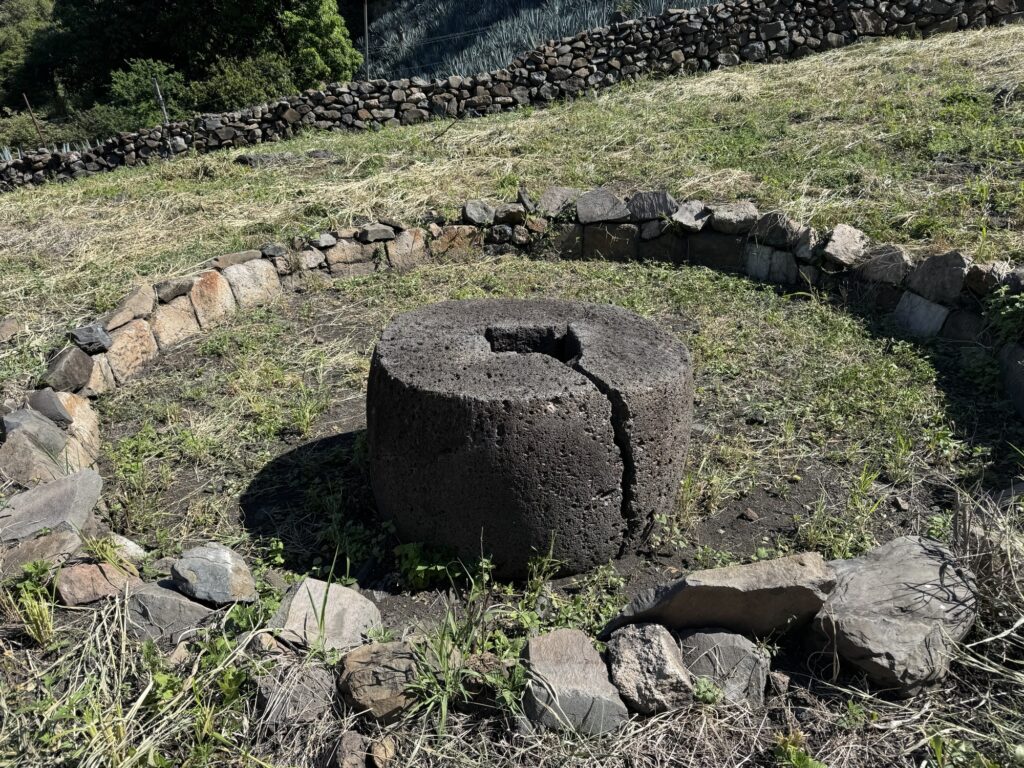 From the distillery, we drove up the mountain to the archaeological site. It is the oldest known distillery in Mexico dating to the 1600’s. Here again you could see the use of gravity in the production process. Pinas were rolled down the hill directly into the pit oven. From the oven they were rolled to the tahona for crushing and then into a trough to be fermented and distilled in underground tanks.