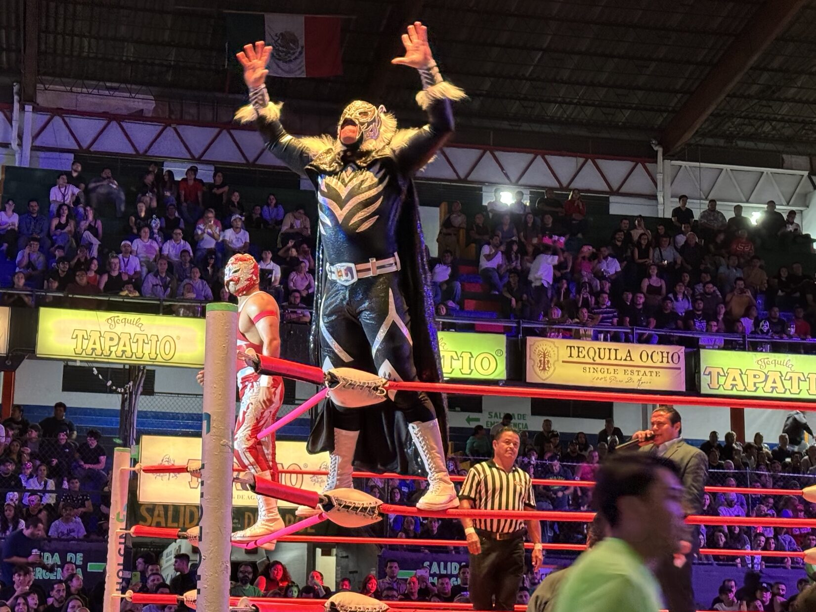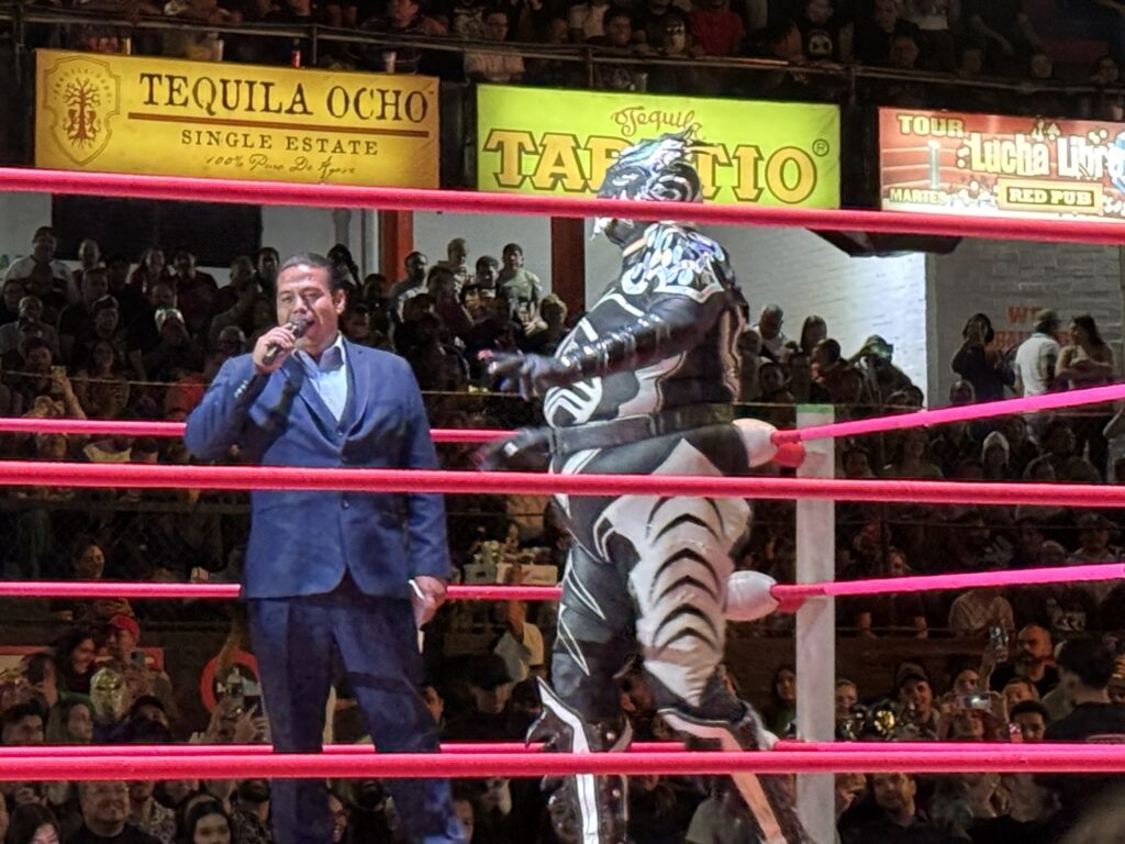 This evening was an experience I’m not sure I could have ever anticipated. We had tickets to see Lucha Libre. Lucha Libre is Mexican professional wrestling in which most of the participants wear masks. Unmasking a luchador is a major event. Robert is a big fan of wrestling so, he was very excited. Along the way, we stopped for some street tacos and a beer for dinner.