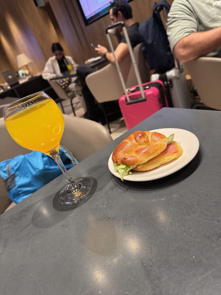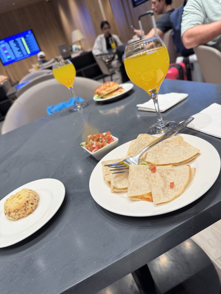 As all things must come to an end, it was time to return home. As we begin our trip, we ended our trip in the airport lounge with quesadillas, a breakfast sandwich, and, of course, mimosas. Adios, until next time!